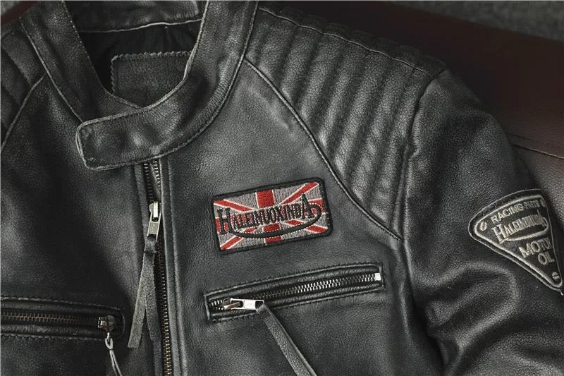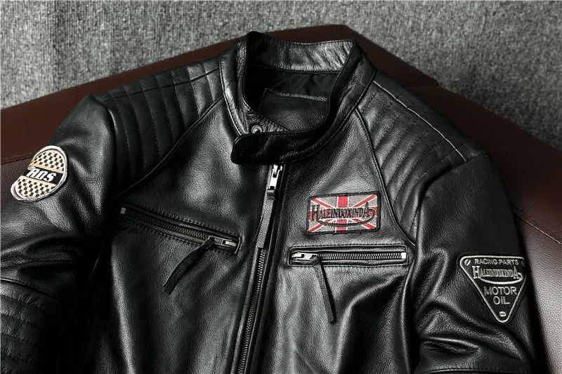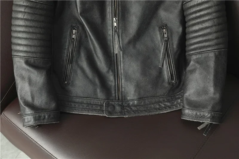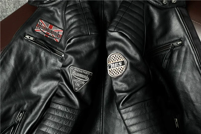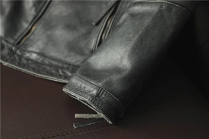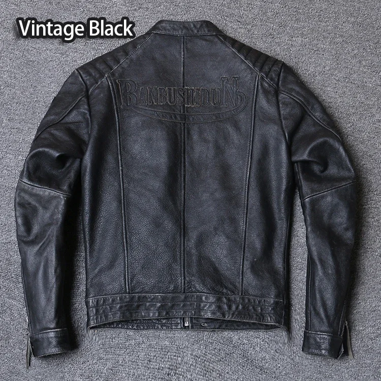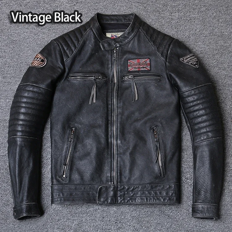 Men’s 100% Real Cowhide Leather Jacket – Slim Fit Vintage Biker Style