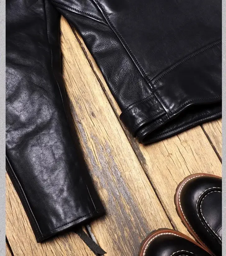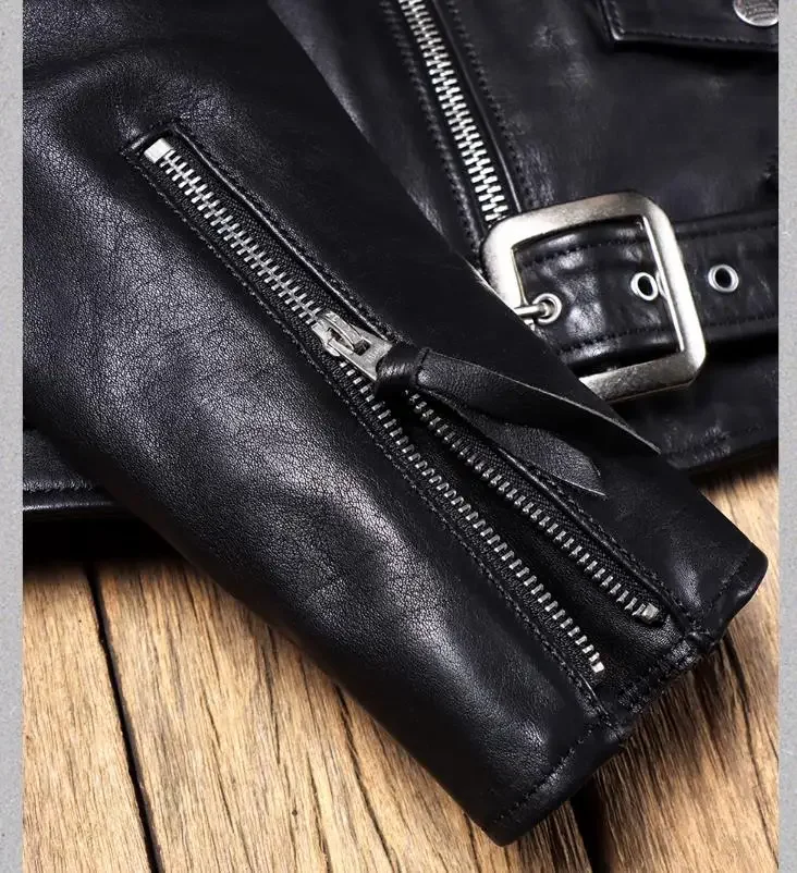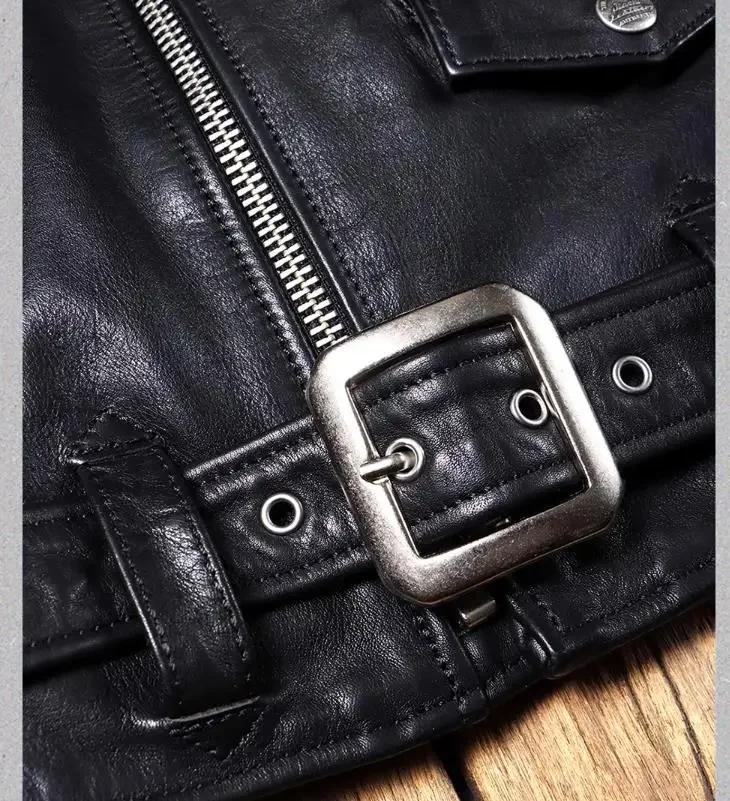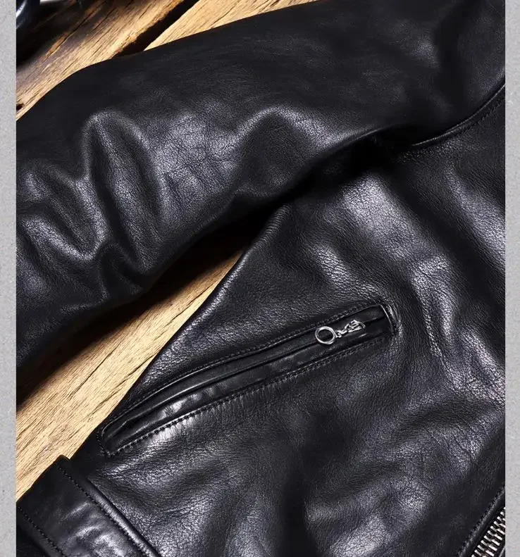 Vintage 613 Style Moto Jacket – Men’s Genuine Cowhide Leather, Slim Fit