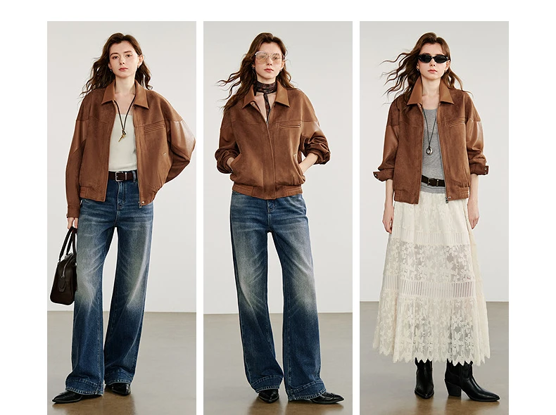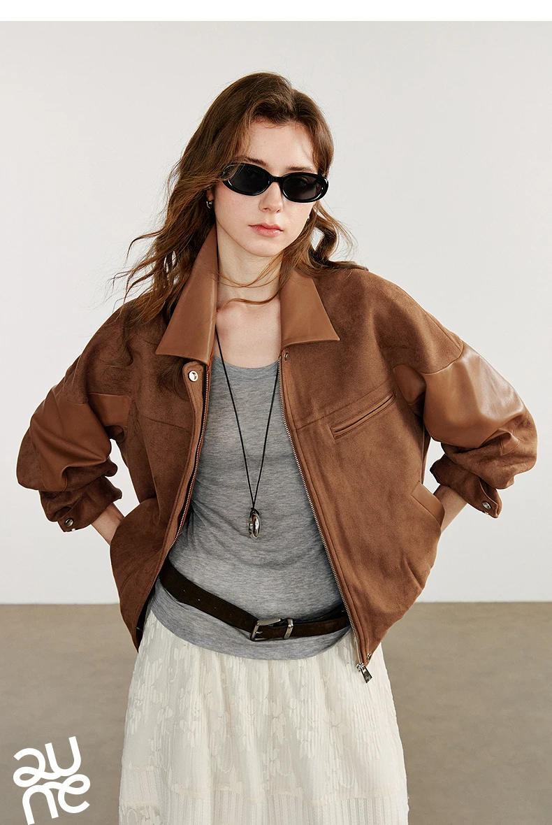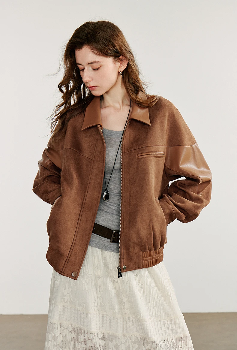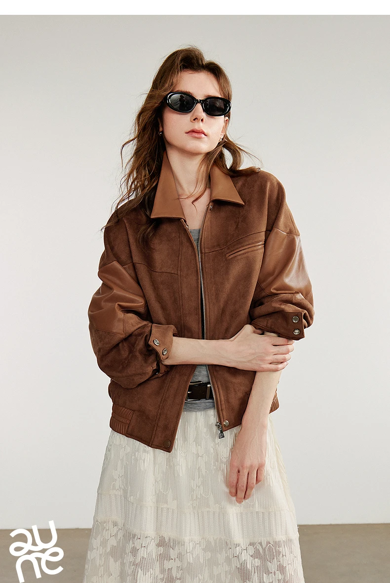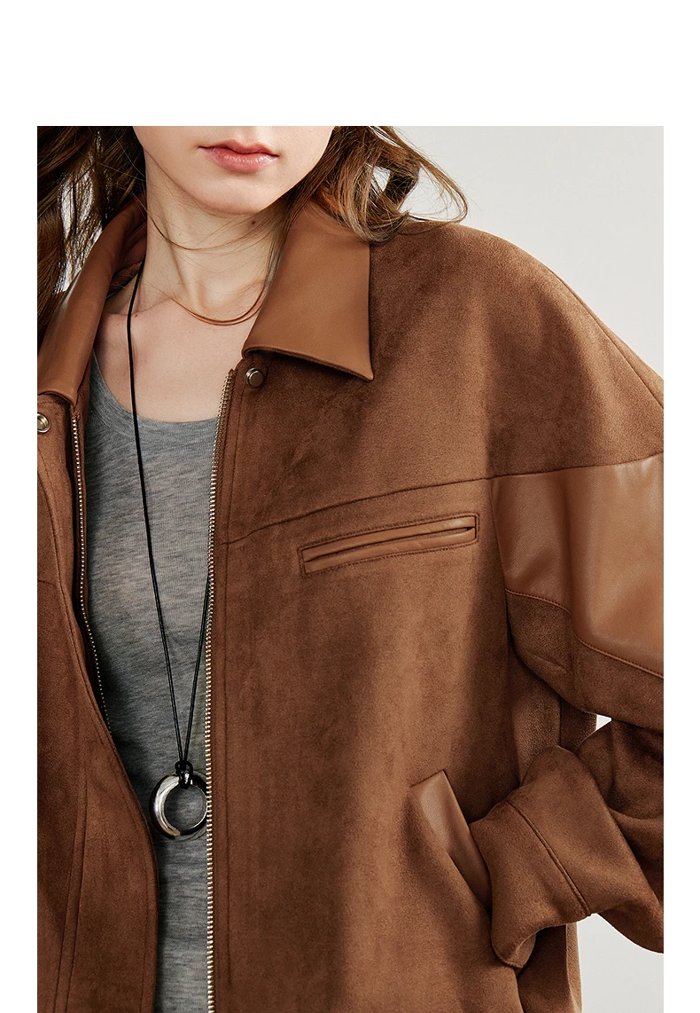 Women’s Retro Suede PU Leather Jacket – Nomadic Style Splicing Coat, Autumn