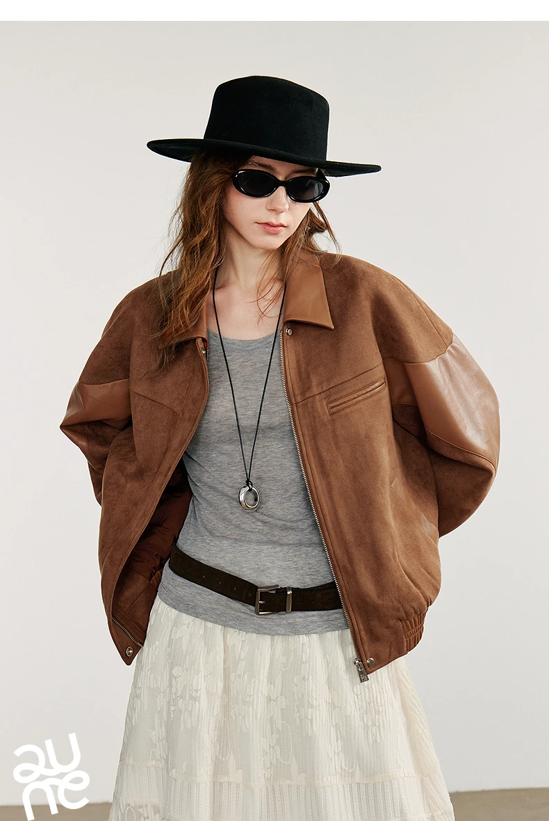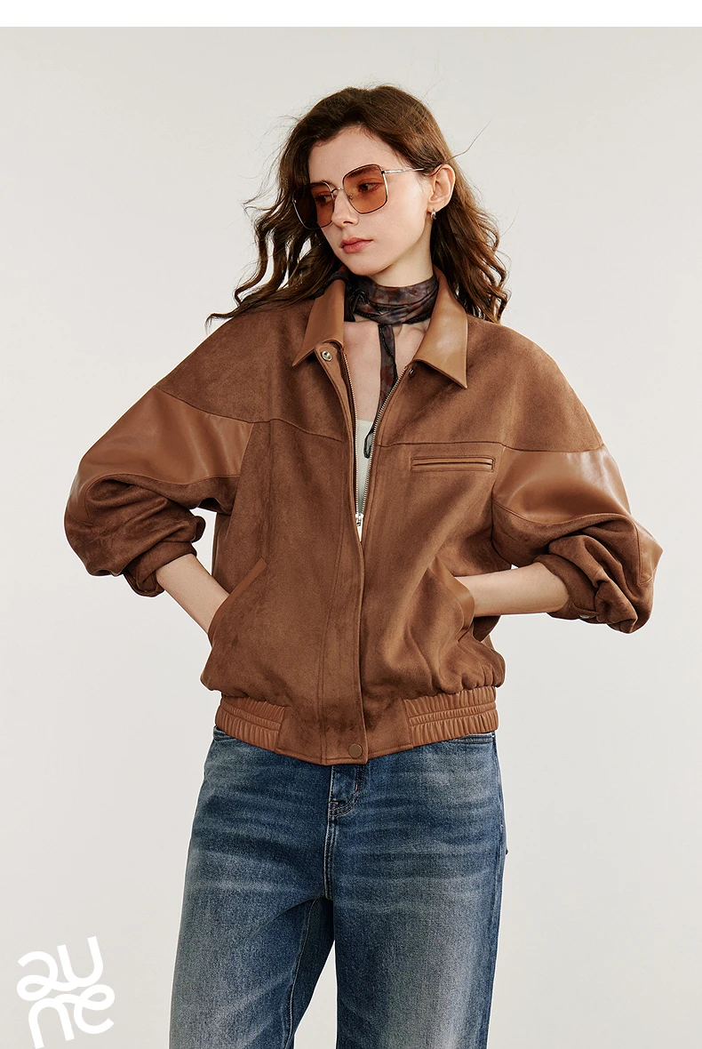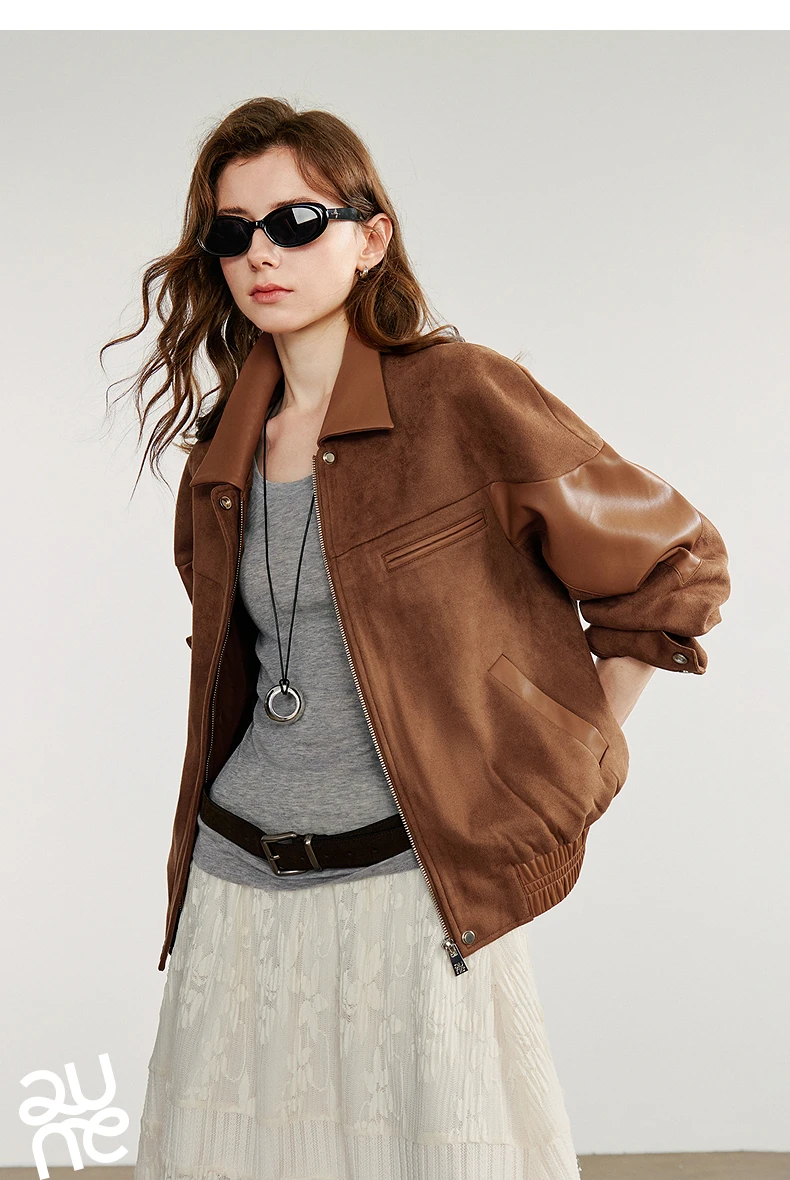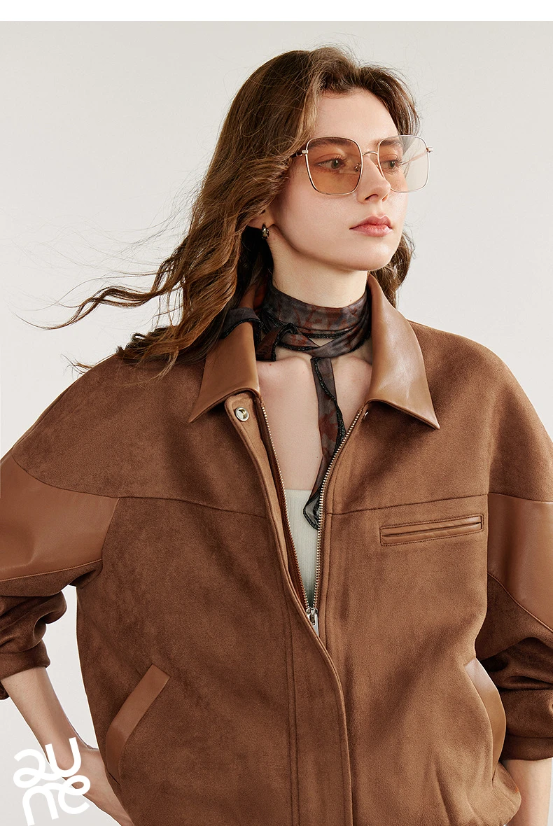 Women’s Retro Suede PU Leather Jacket – Nomadic Style Splicing Coat, Autumn