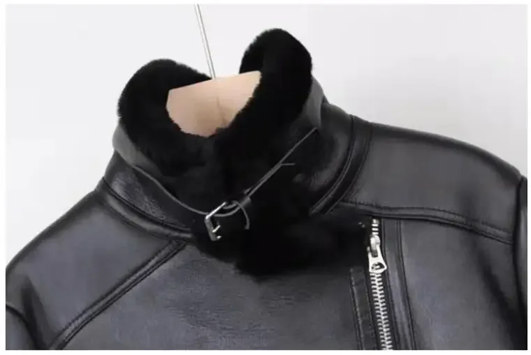 Genuine Sheepskin Leather Jacket – 100% Real Fur Shearling Coat, Winter Warm Wool Outerwear with Plush Lining, Plus Size Fashion Design