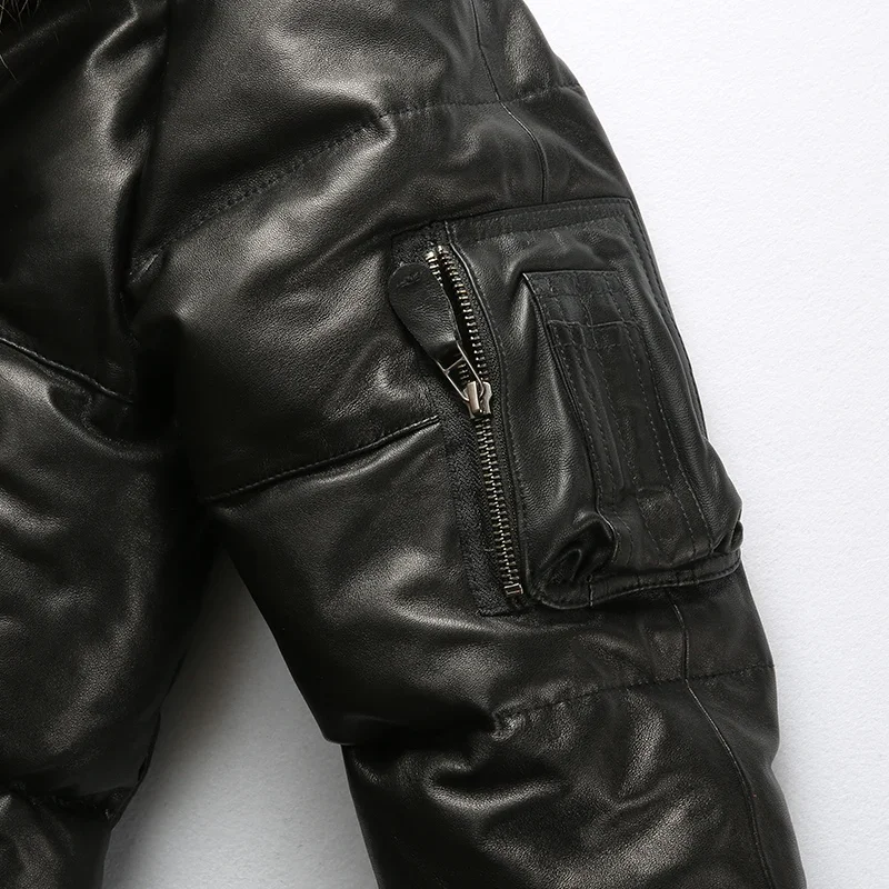 High Quality Super Warm Men's Sheepskin Duck Down Leather Coat – Genuine Shearling Winter Jacket