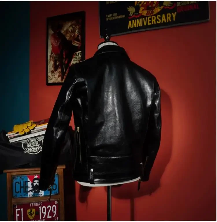 Luxury Japanese Tea-Core Horsehide Leather Jacket – Classic J24 Biker Style Heavyweight Vintage Cowhide Coat for Men