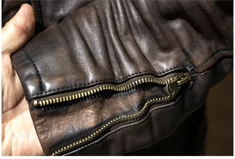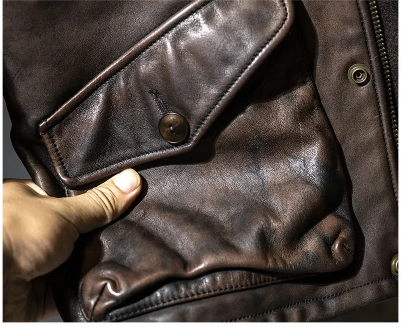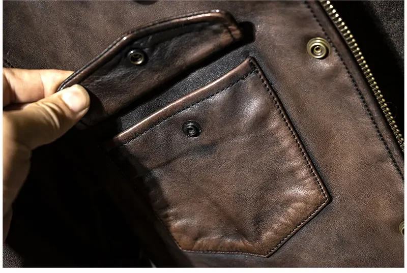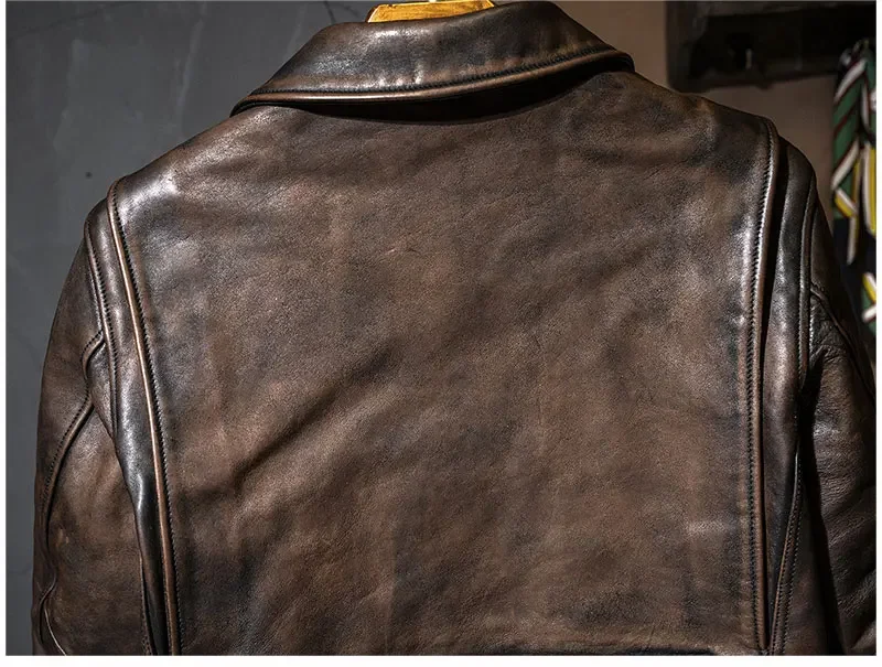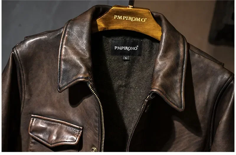 Luxury Men’s Vintage Brown Horsehide Leather Jacket – Genuine Leather Winter Coat, Premium Quality Outerwear