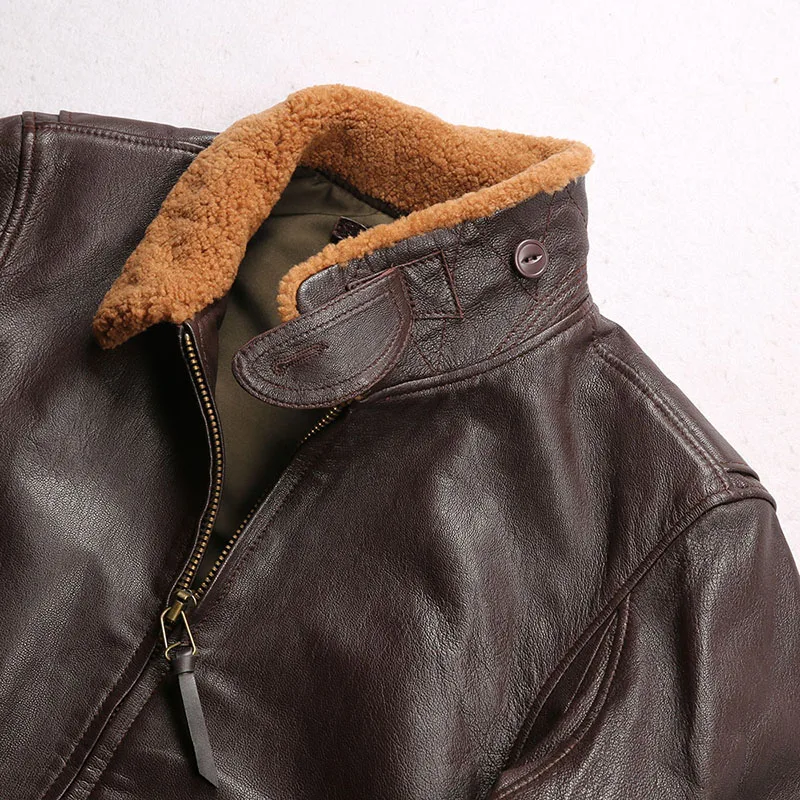 🧥 Made from 100% genuine cowhide leather, this M422A G1 pilot jacket delivers timeless style and durability. The wool collar adds warmth and comfort for colder days, while the slim fit cut creates a sleek and flattering silhouette. Perfect for men who appreciate vintage aviator style and premium craftsmanship.