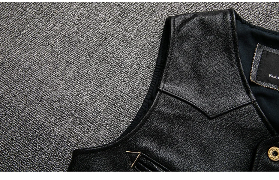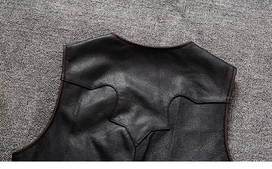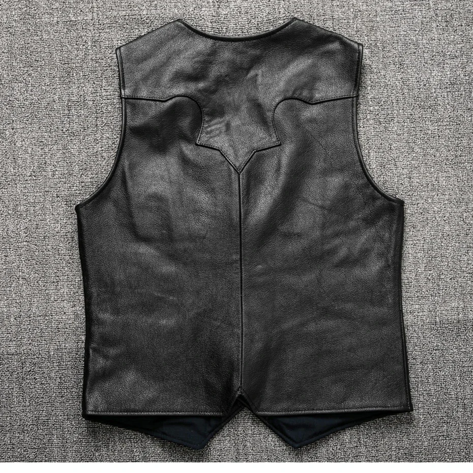 Men’s 100% Genuine Cow Leather Motorcycle Vest Vintage Slim Fit Biker Waistcoat Jacket