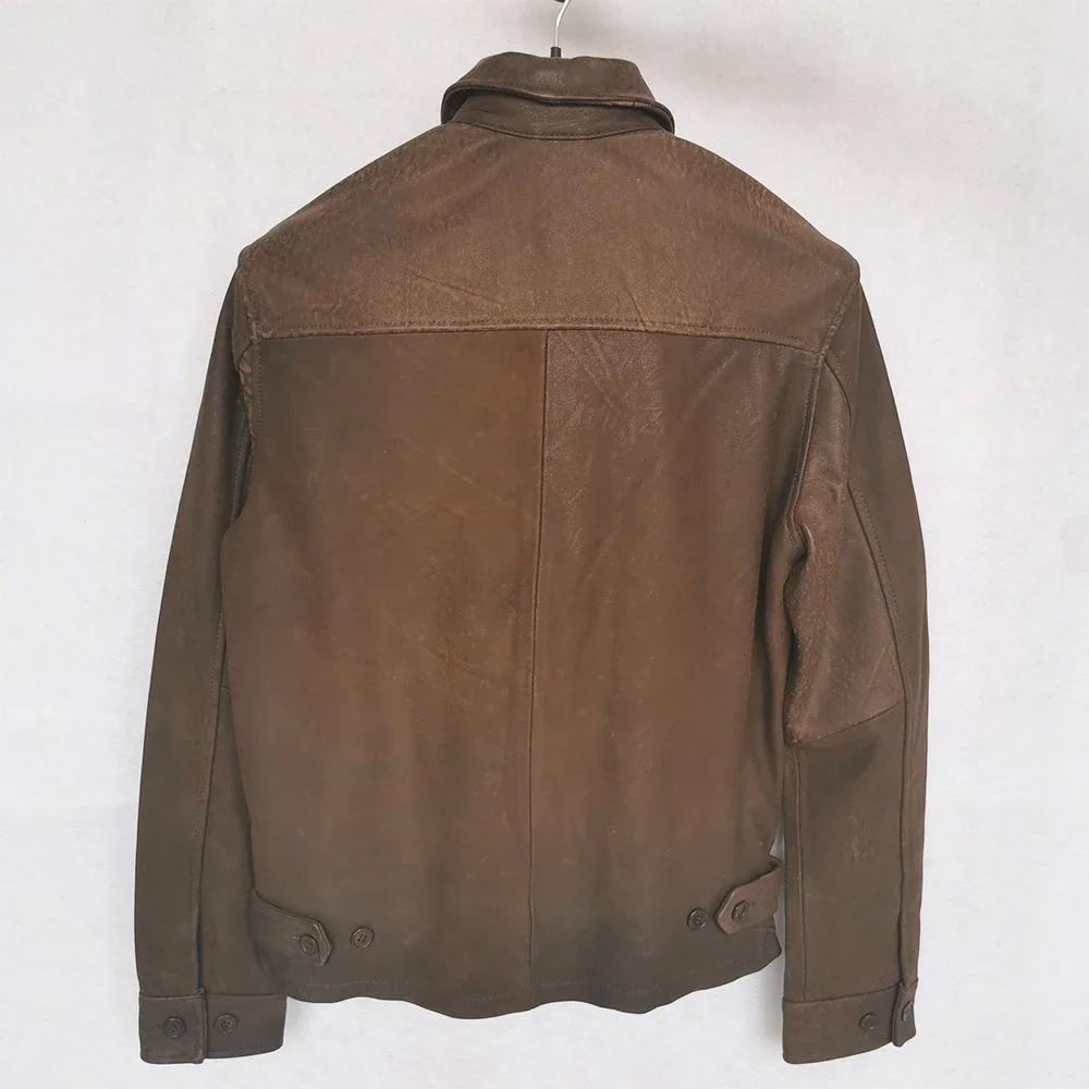 🧥 Men’s 100% Genuine Sheepskin Leather Jacket – Soft Lightweight Blue Casual Coat for Spring & Autumn