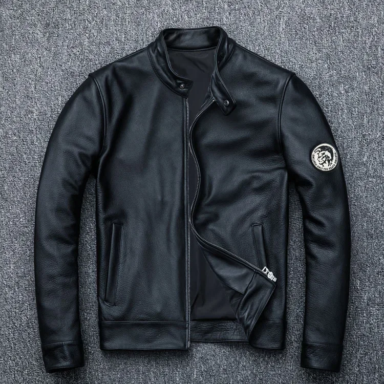Men’s 100% Natural Calfskin Leather Jacket | Genuine Black Leather Coat | Premium Autumn Overcoat | Classic Slim Fit Outerwear