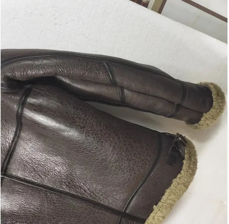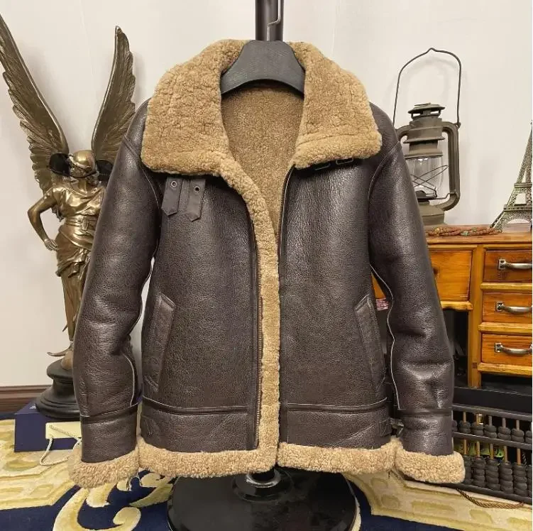 Men’s B3 Bomber Shearling Jacket – 100% Real Sheepskin Leather Coat with Natural Wool Lining, Thick Winter Warm Genuine Fur Outerwear