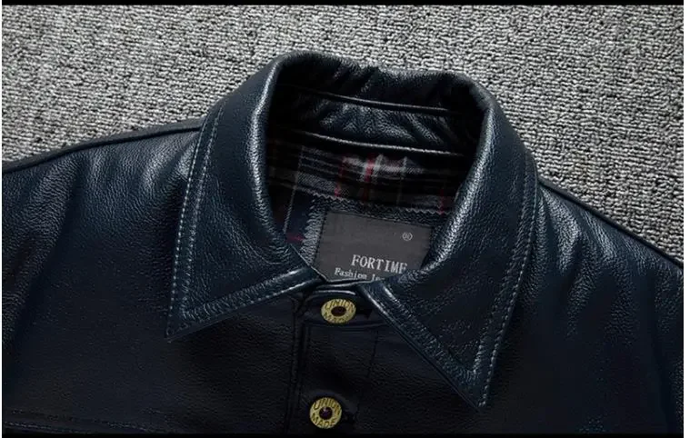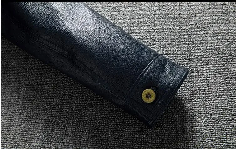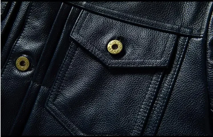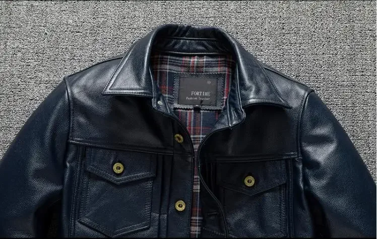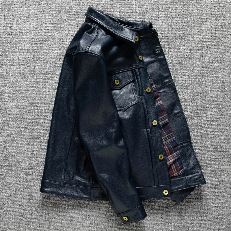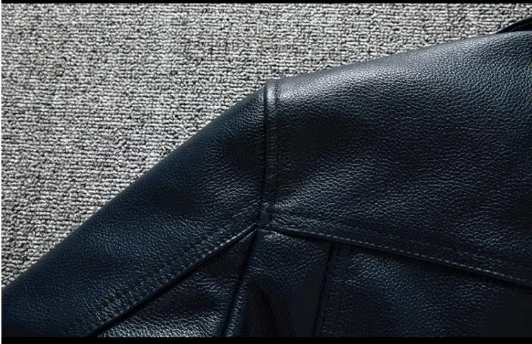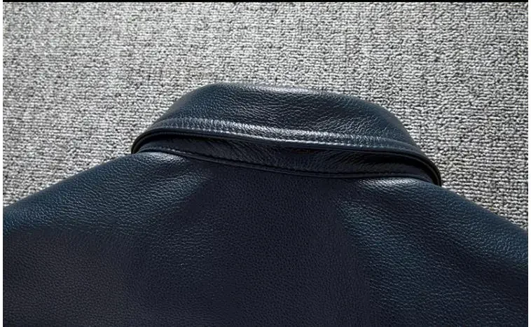 Men’s Blue Genuine Calfskin Leather Jacket – Casual Winter Warm Coat, High-Quality Real Leather Outerwear, Plus Size Available