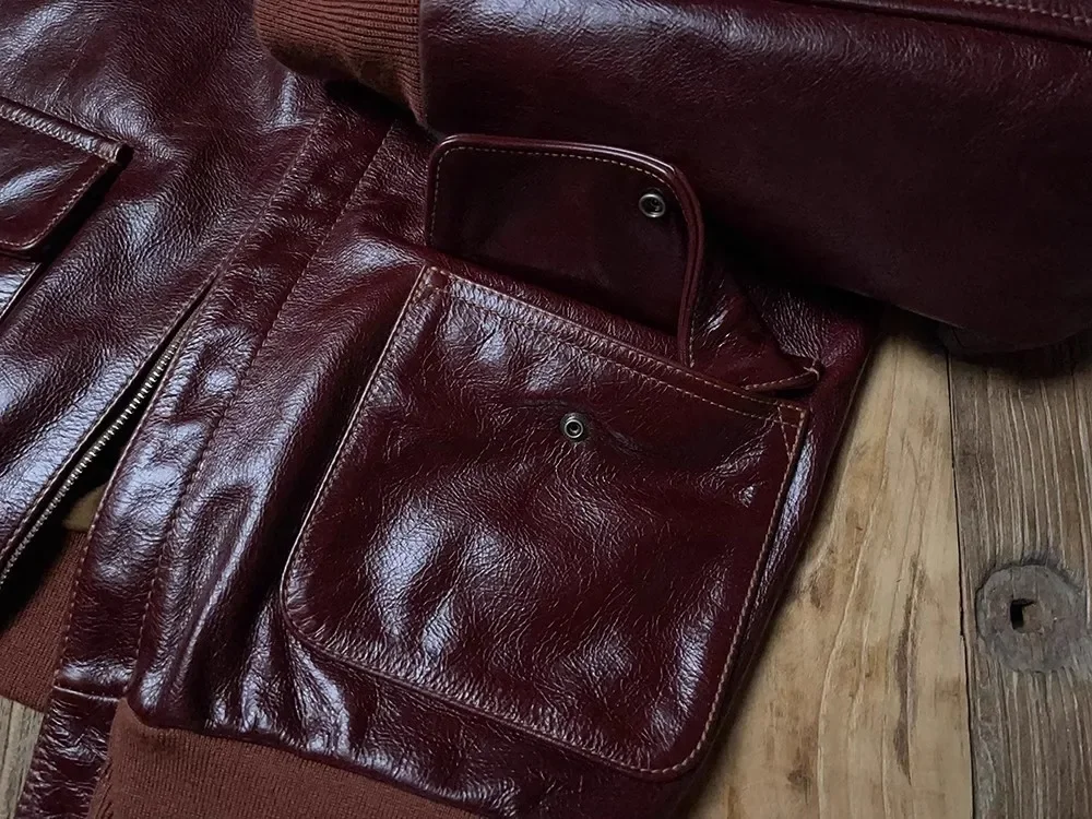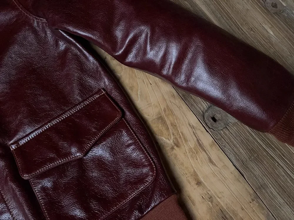 🧥 Crafted from 100% genuine cowhide leather, this Classic A-2 Bomber Jacket delivers timeless style with a luxurious, thick leather feel. The deep burgundy tone adds sophistication, while its durable build ensures lasting quality — perfect for autumn and winter wear.