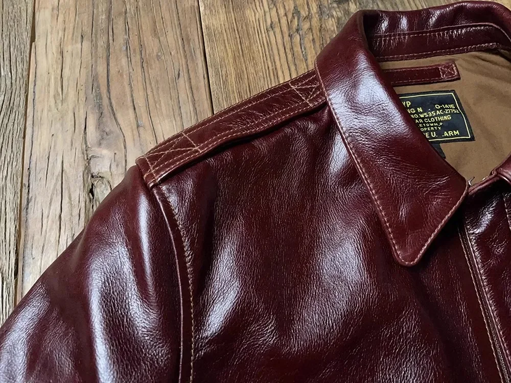 Men’s Classic A-2 Bomber Jacket – 100% Genuine Leather Coat, Luxury Thick Cowhide Outerwear, Quality Burgundy Flight Jacket