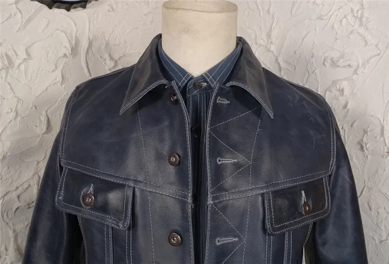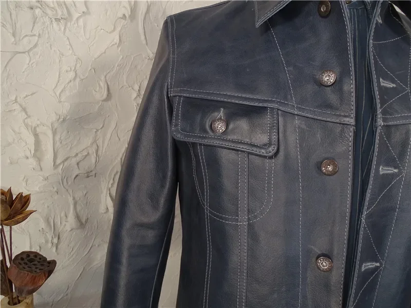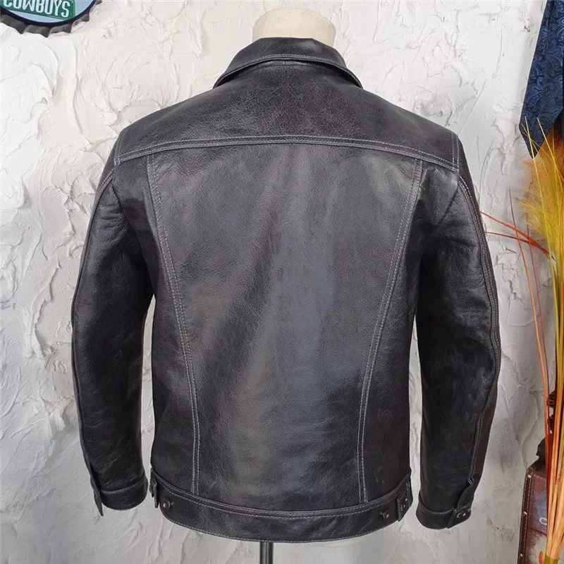 Men’s Classic Batik Cowhide Leather Jacket – Vintage 1.2mm Tanned Real Leather Slim Biker Coat