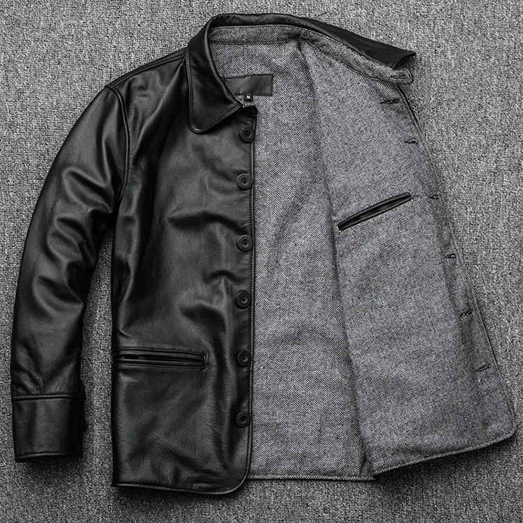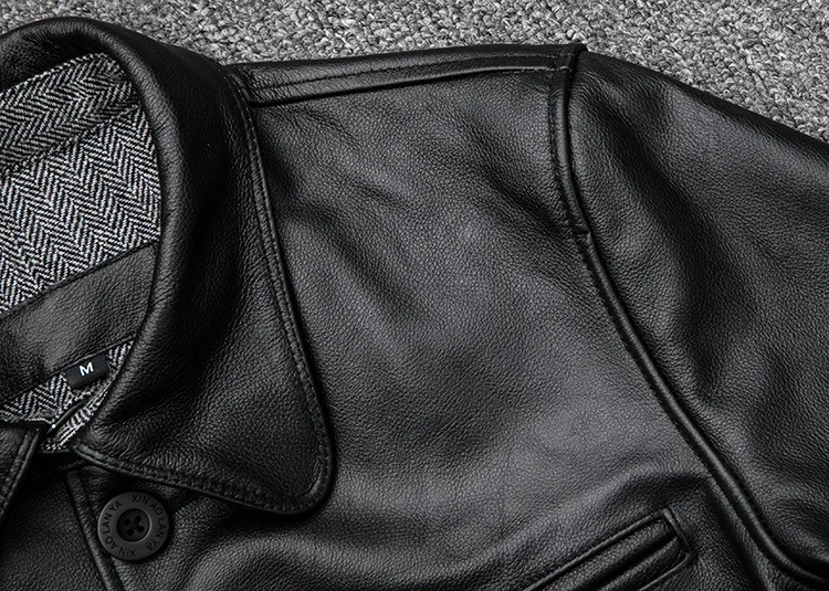 Men’s Classic Winter Cowhide Leather Jacket – Fashion Genuine Leather Brakeman Coat, Premium Quality Plus Size Outerwear