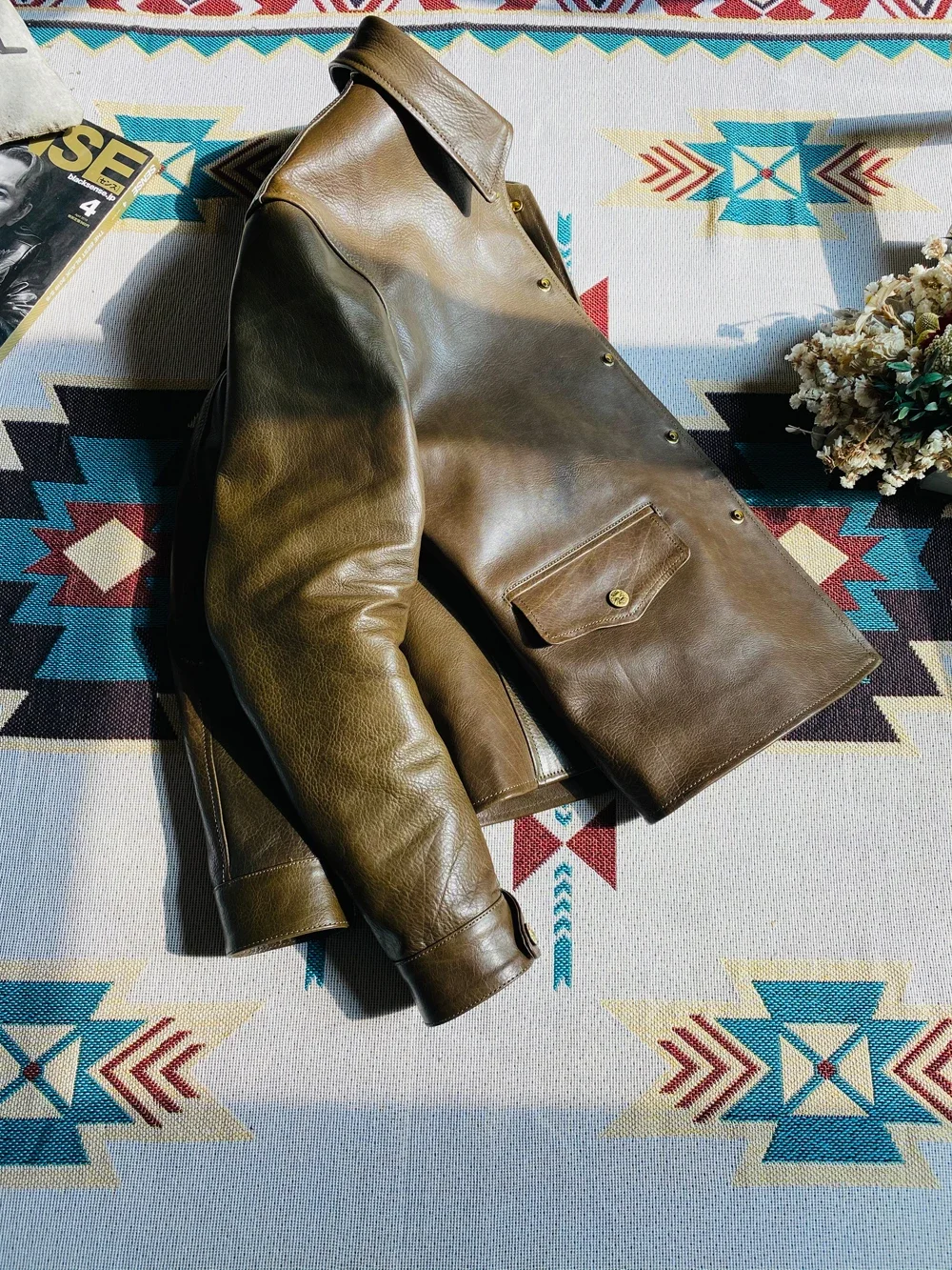 Men’s Customized Genuine Leather Coat – Classic Casual Brakeman Style Luxury Rare Green Edition