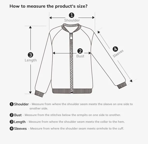 | Size | Shoulder (cm/in) | Bust (cm/in) | Sleeve Length (cm/in) | Length (cm/in) |
