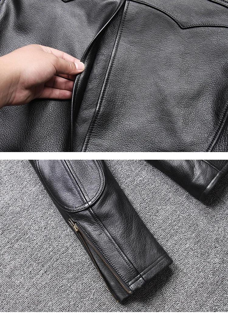 🧥 Crafted from 100% genuine cowhide leather, authenticity guaranteed, offering premium quality with a classic motorcycle design, short slim fit, and stylish lapel collar — perfect for autumn wear and daily riding