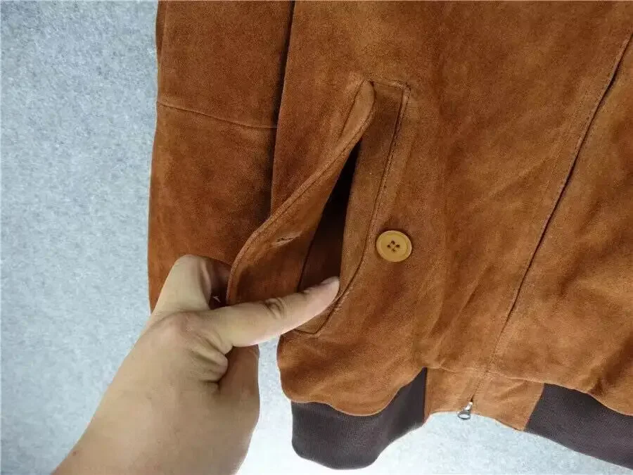 Men's Genuine Cow Suede Leather Coat Casual Jacket for Male Autumn Fall Clothing Outerwear Camel Navy Plus Sized
