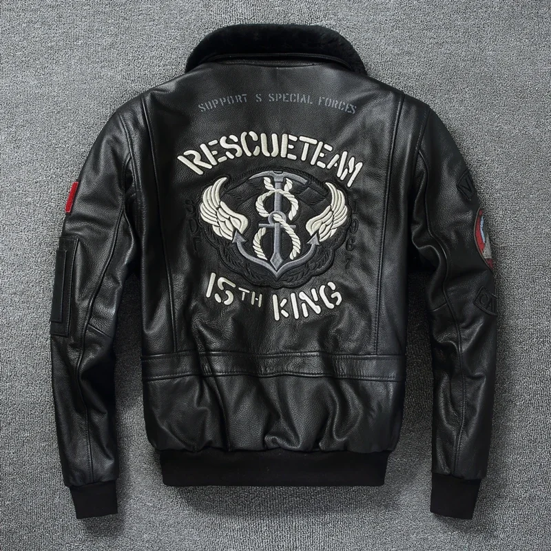 🧥 Men’s Genuine Cowhide Leather Jacket – Natural Fur Lined Winter Flight Coat with Biker Style Design