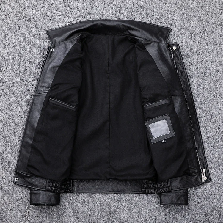 Men’s Genuine Cowhide Leather Jacket – Thick Winter Casual Leather Coat with Multiple Pockets, Premium Quality Warm Outerwear