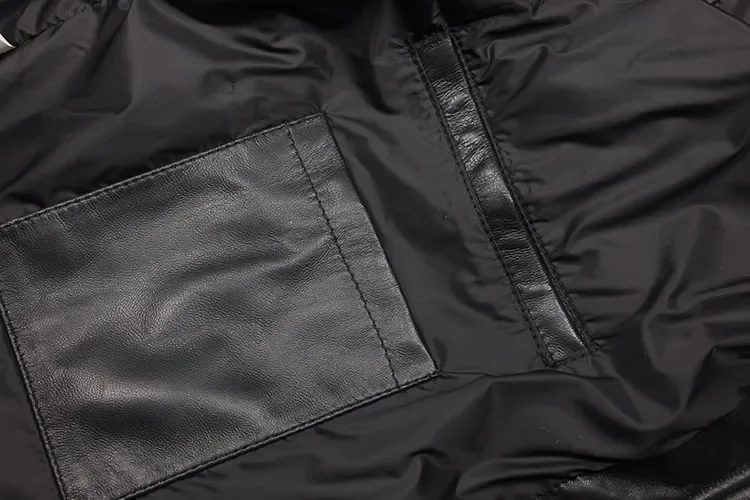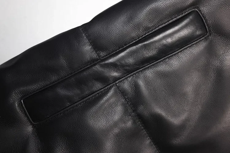 Men's Genuine Sheepskin Leather Down Jacket – Classic Casual Winter Warm Coat, Black Real Leather Outerwear
