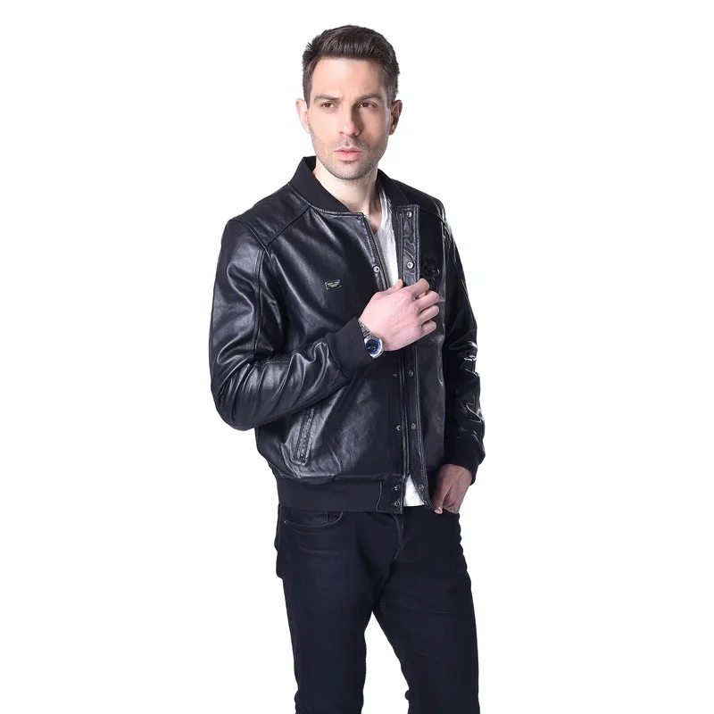 Men’s Genuine Sheepskin Leather Jacket – 100% Soft Real Leather Skull Design Coat for Spring Season