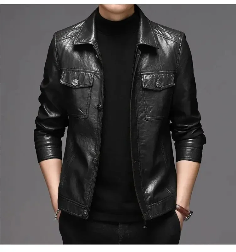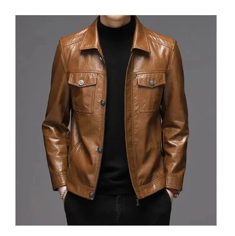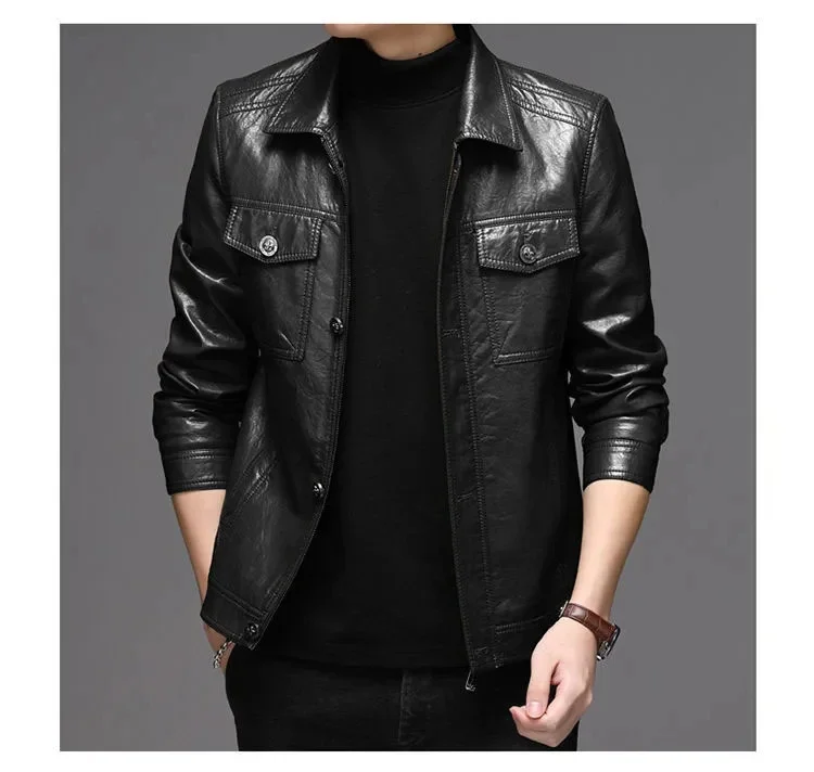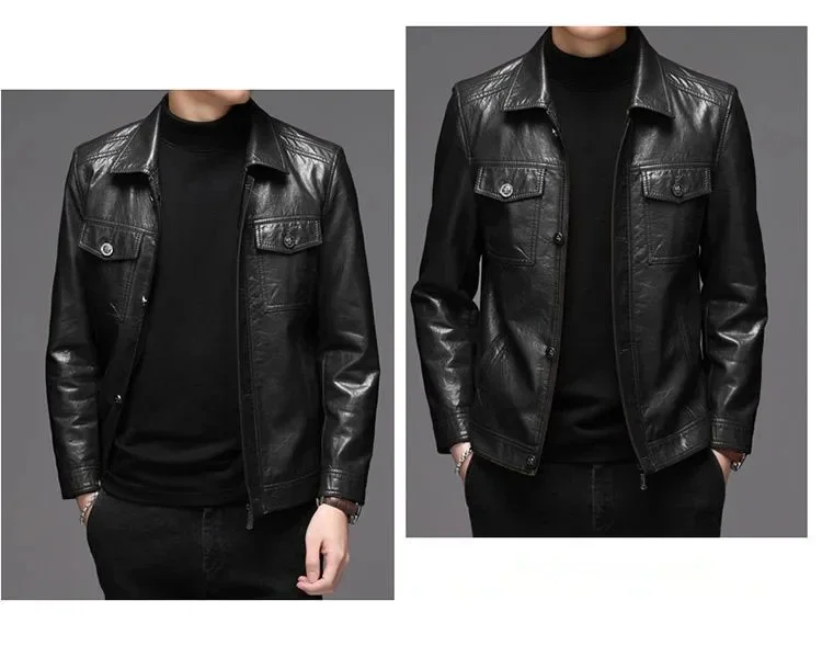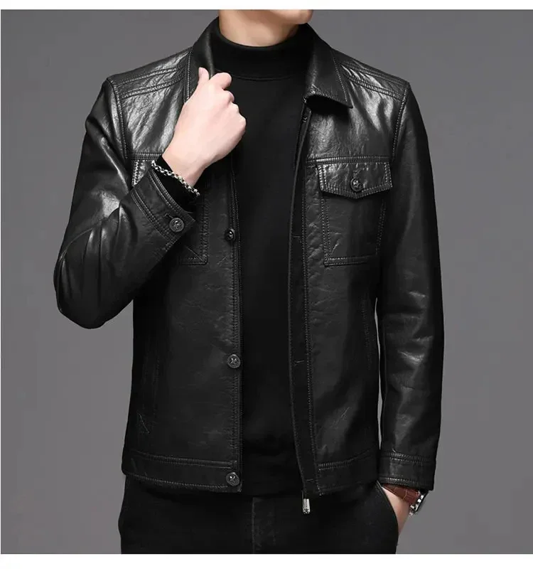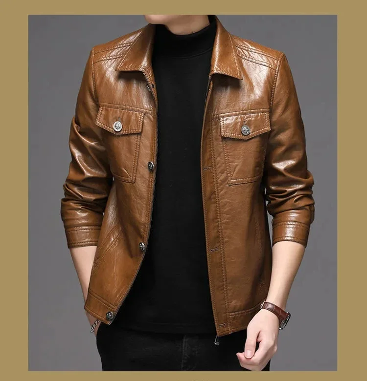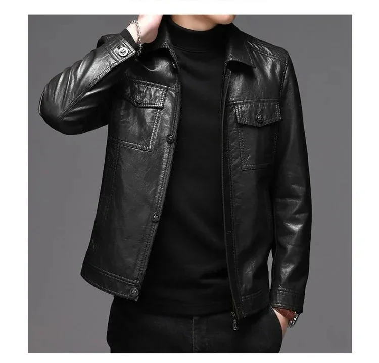 Men’s Genuine Sheepskin Leather Jacket – Slim Fit Korean Lapel Short Soft Leather Coat for Spring, Autumn & Winter