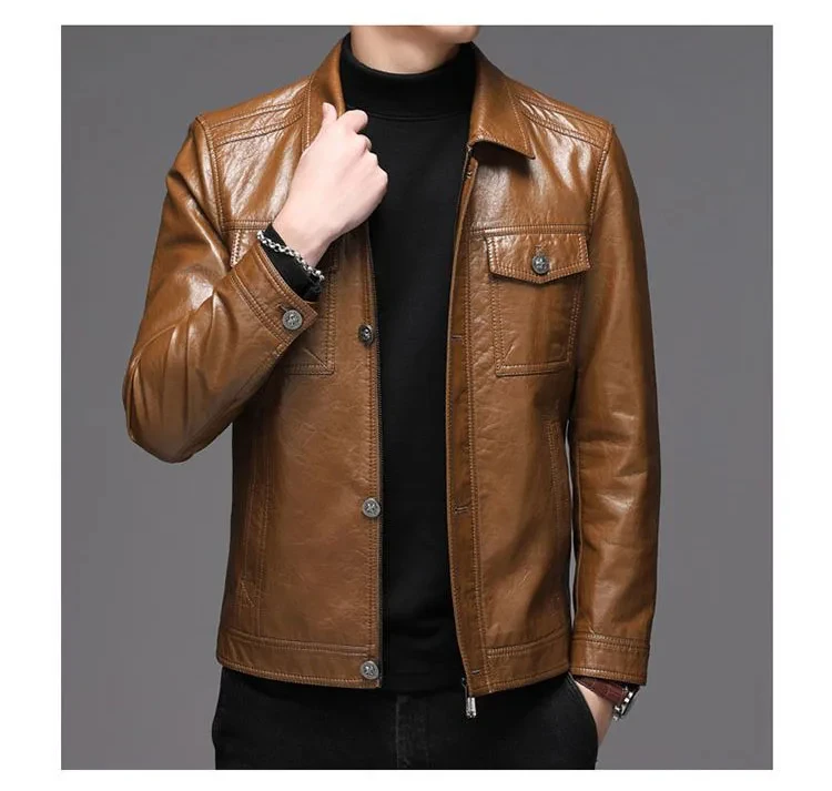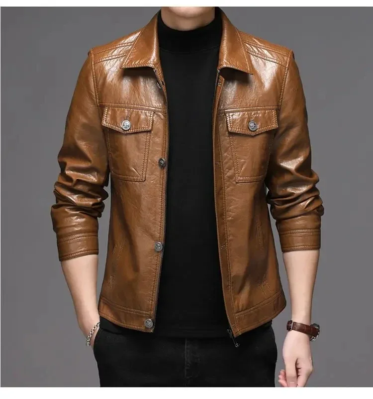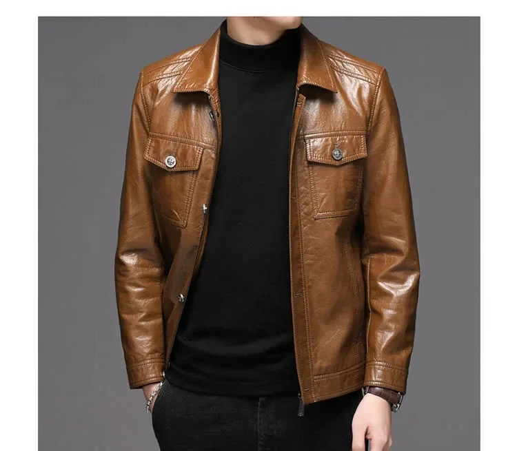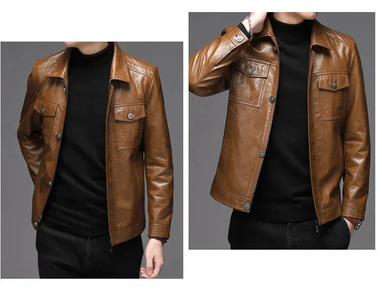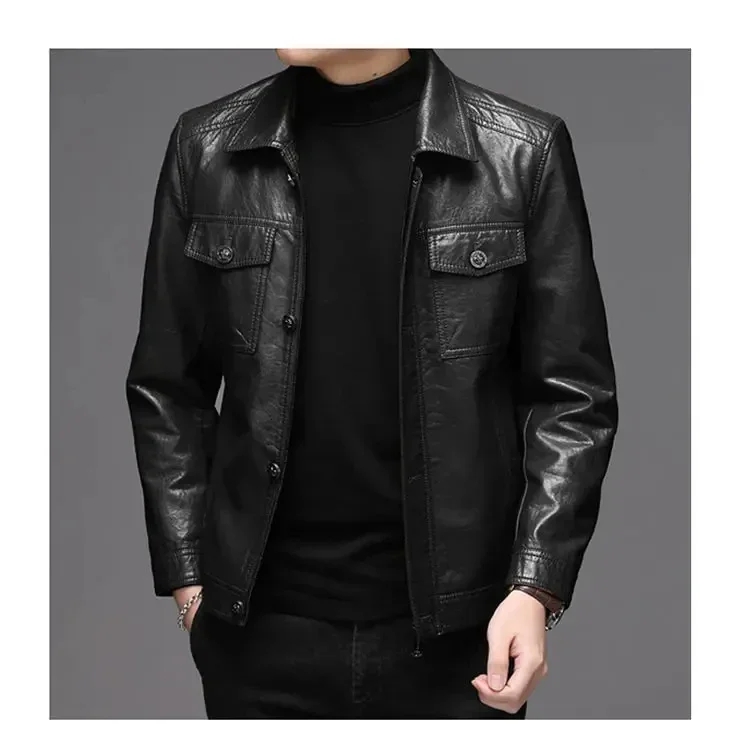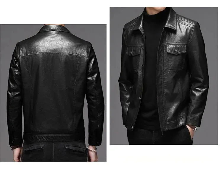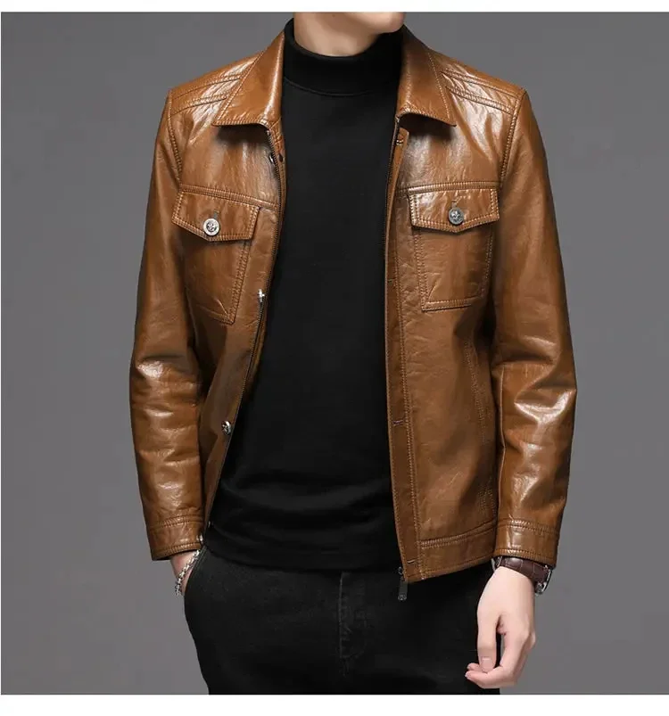 Men’s Genuine Sheepskin Leather Jacket – Slim Fit Korean Lapel Short Soft Leather Coat for Spring, Autumn & Winter