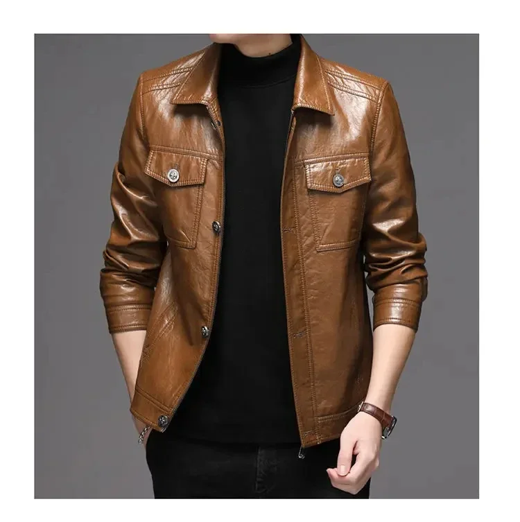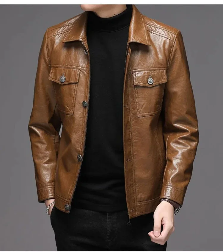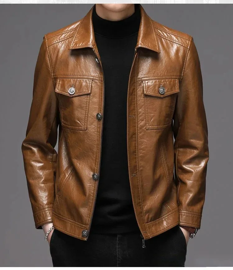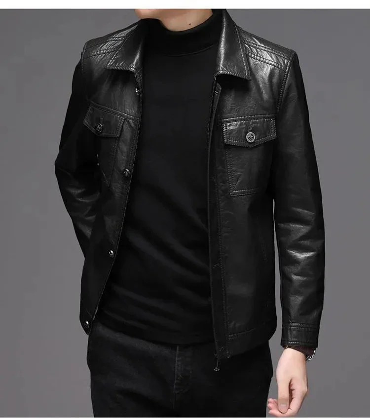 Crafted from 100% genuine sheepskin leather, this jacket features a soft, lightweight texture and a modern slim-fit design. The Korean-style lapel collar adds a youthful, handsome look that’s perfect for casual or semi-formal wear throughout spring, autumn, and mild winter days. A timeless piece that combines comfort, quality, and effortless elegance.