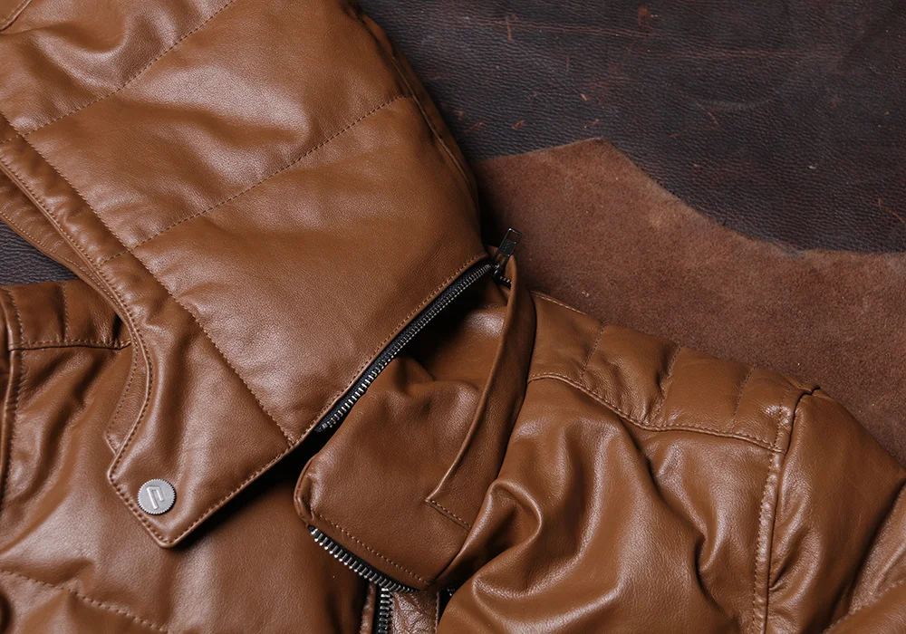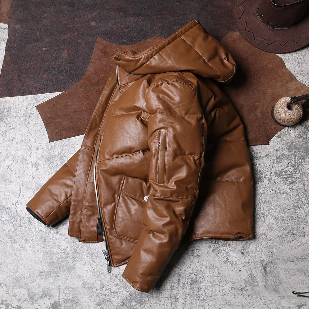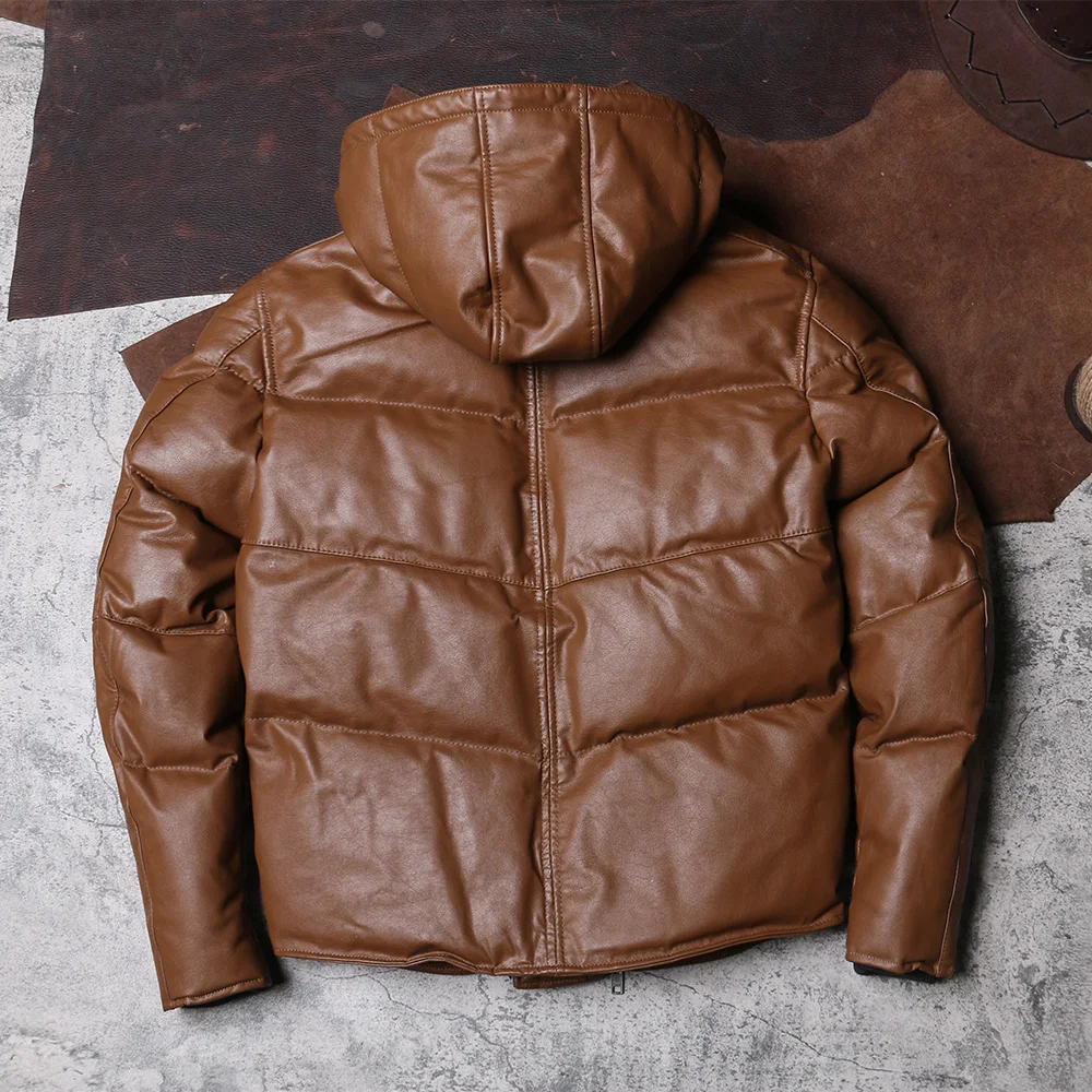 Men’s High-Quality Genuine Cowhide Leather Down Jacket – Super Warm Winter Coat, Natural Cow Skin Casual Outerwear in Asian Size