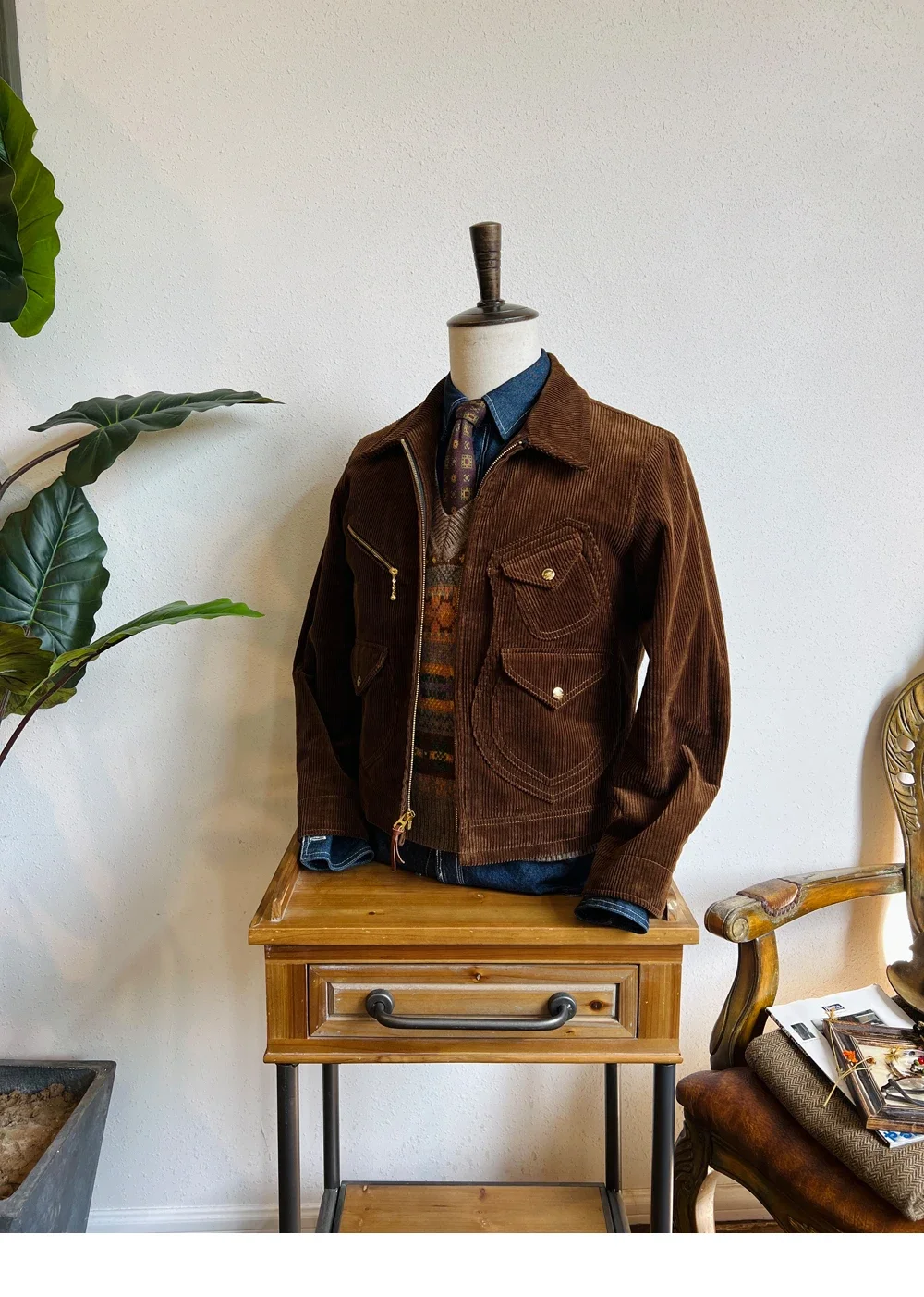 Men’s Japanese Corduroy Jacket – 13.5oz Heavy Cotton Casual Coat, Asian Size Premium Quality