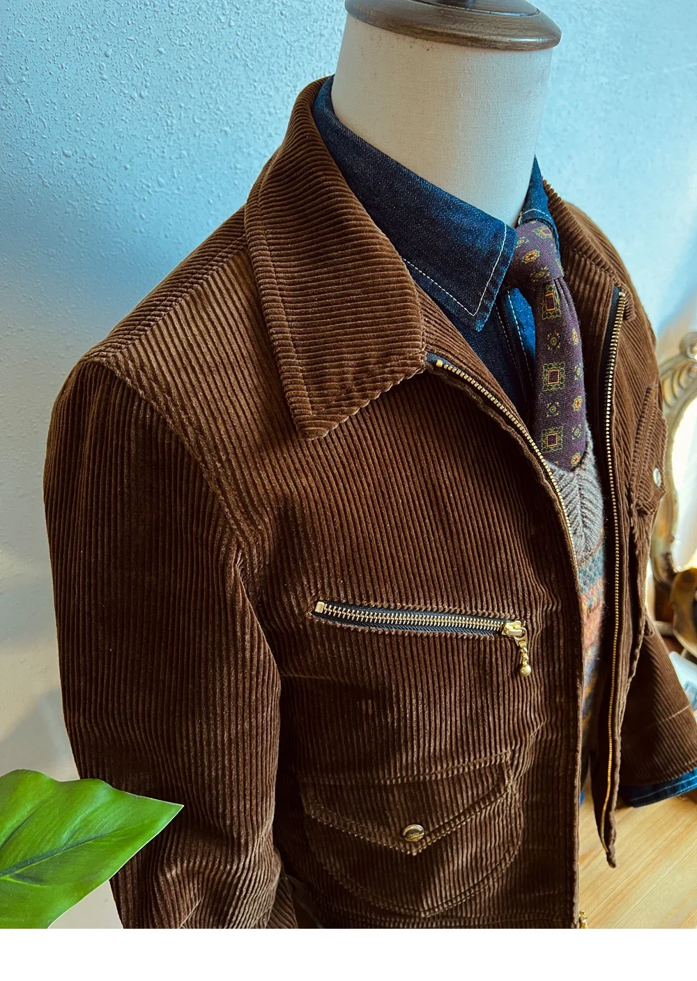 🧥 Men’s Japanese Corduroy Jacket – 13.5oz Heavy Cotton Casual Coat, Asian Size Premium Quality