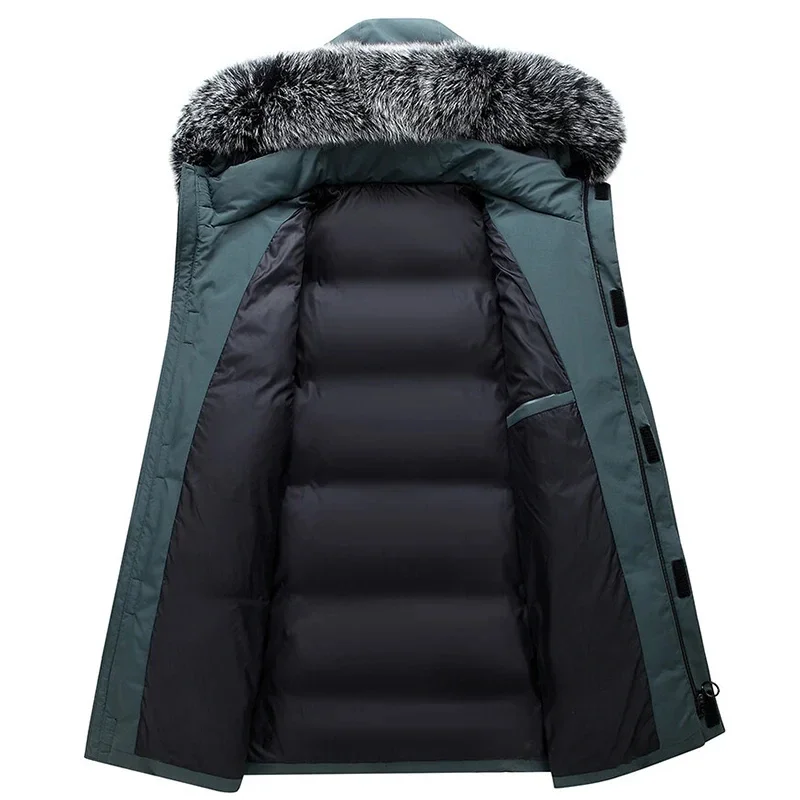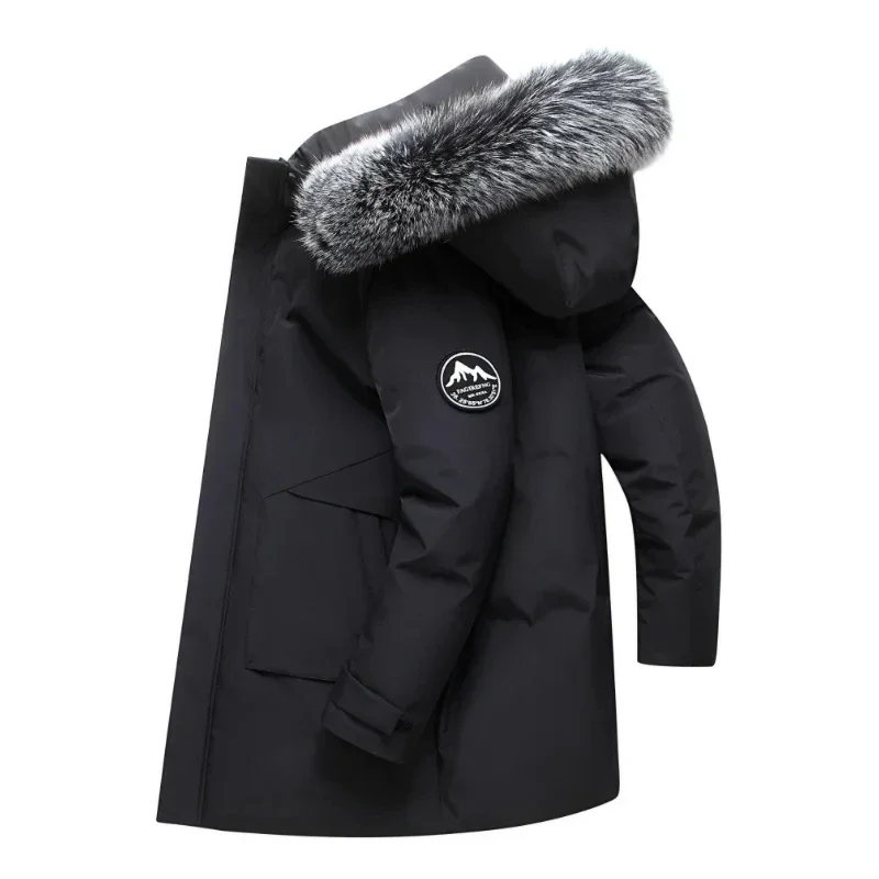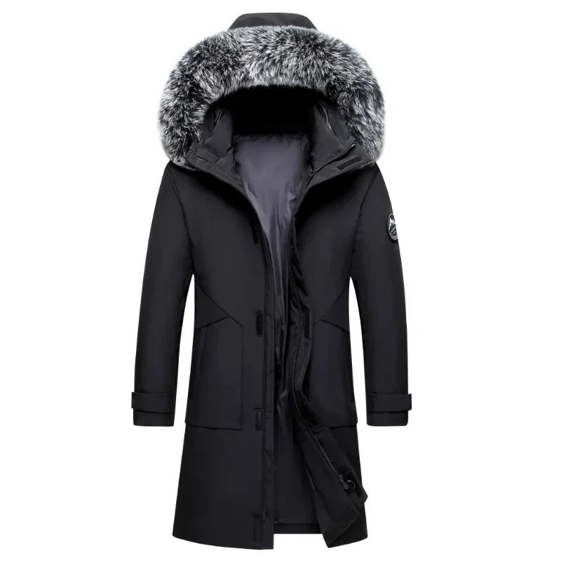 Men’s Long Hooded Down Jacket – Windproof Winter Parka with Warm White Duck Down Filling