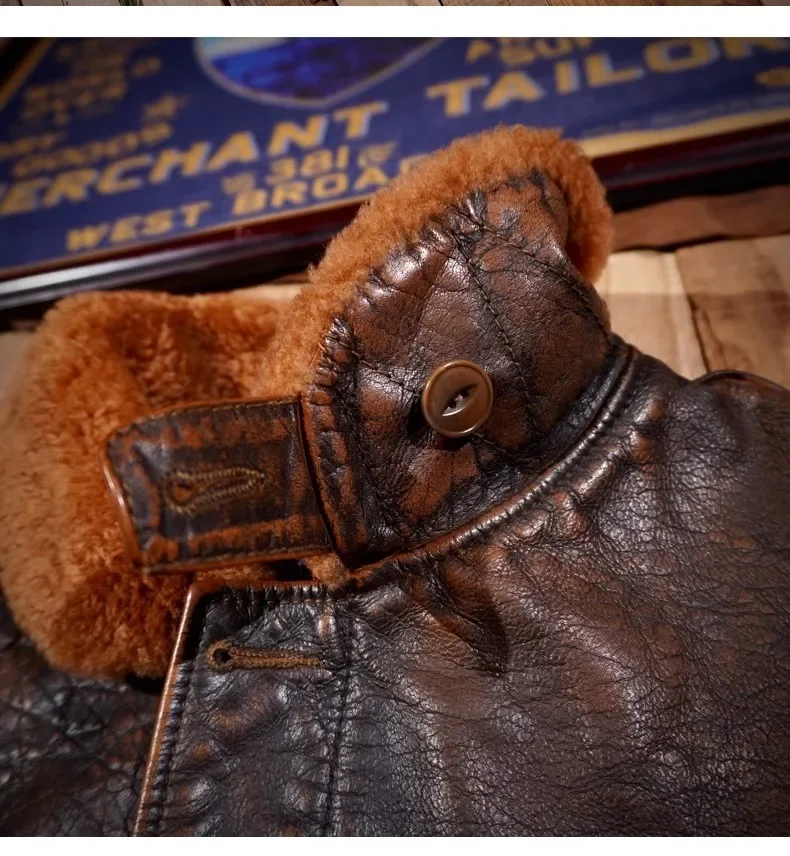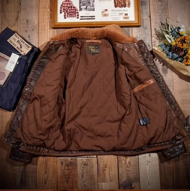 Men’s Luxury Vintage Argentine Bullhide Leather Jacket – Retro Brown Genuine Leather N1 Classic Warm Coat