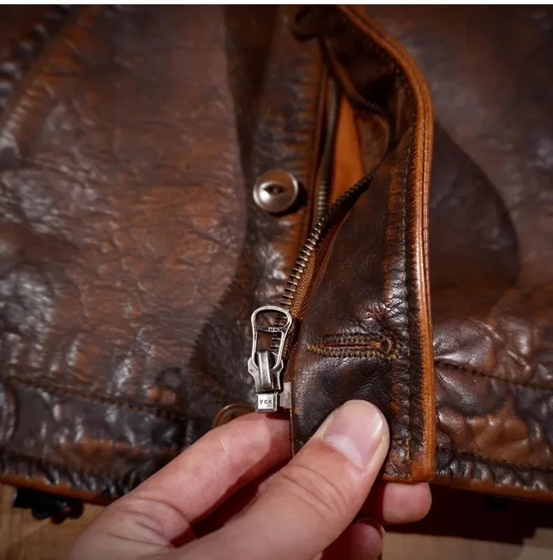 Due to natural leather characteristics, each jacket’s tone and texture may vary slightly, enhancing its authentic vintage look.