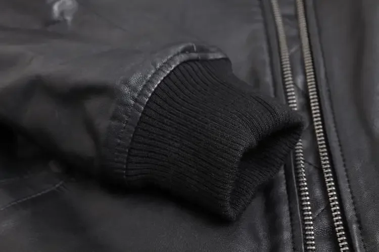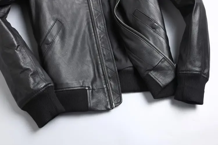 Men’s MA-1 Air Force Leather Bomber Jacket – Classic Black Cowhide Flight Coat, Casual Vintage Pilot Style Outerwear, Wholesale Available