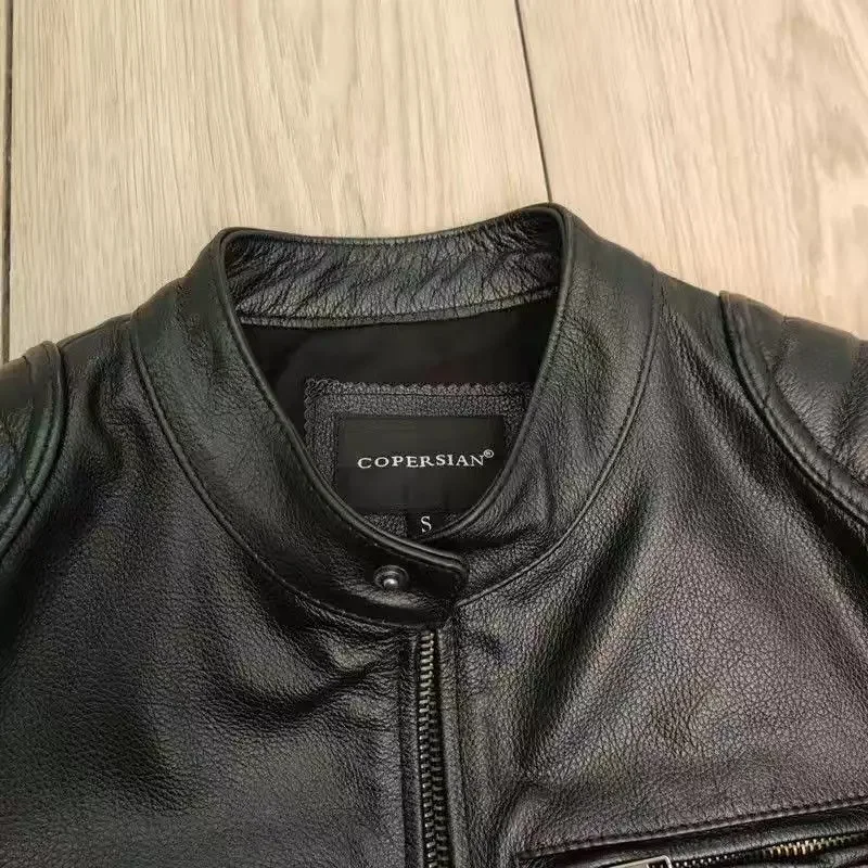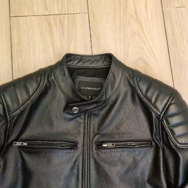 🧥 Men’s Oversized Genuine Leather Motorcycle Jacket – Real Leather Biker Coat, Short Bomber Style for Big Sizes