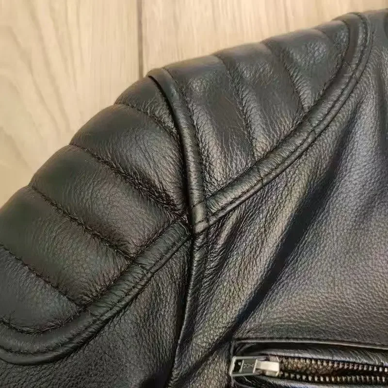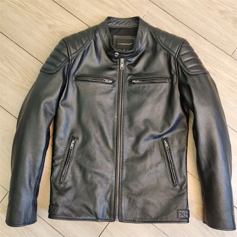Men’s Oversized Genuine Leather Motorcycle Jacket – Real Leather Biker Coat, Short Bomber Style for Big Sizes