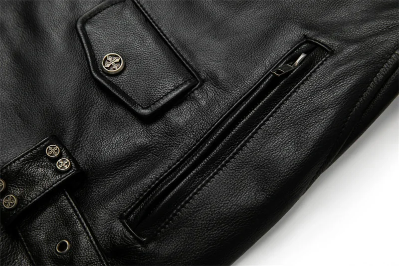 Men’s Real Cowhide Leather Jacket – Motorcycle Biker Style, Casual Autumn Riding Coat