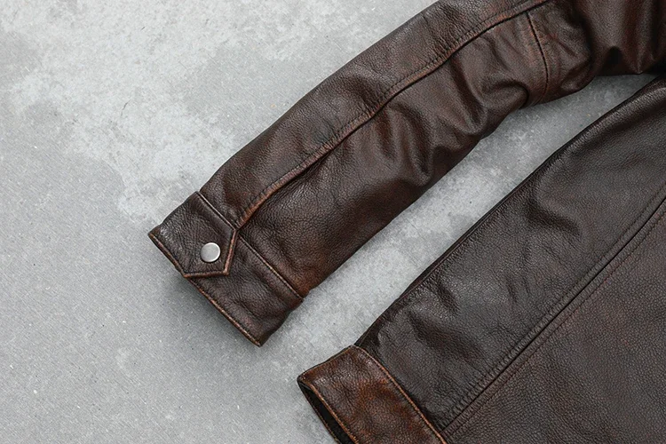 🧥 Crafted from 100% genuine cowhide leather, this retro distressed jacket combines rugged durability with youthful style. Featuring a slim fit design, unlined interior, and natural cowhide texture, it’s perfect for riders and fashion-forward men seeking a vintage statement piece for all seasons.