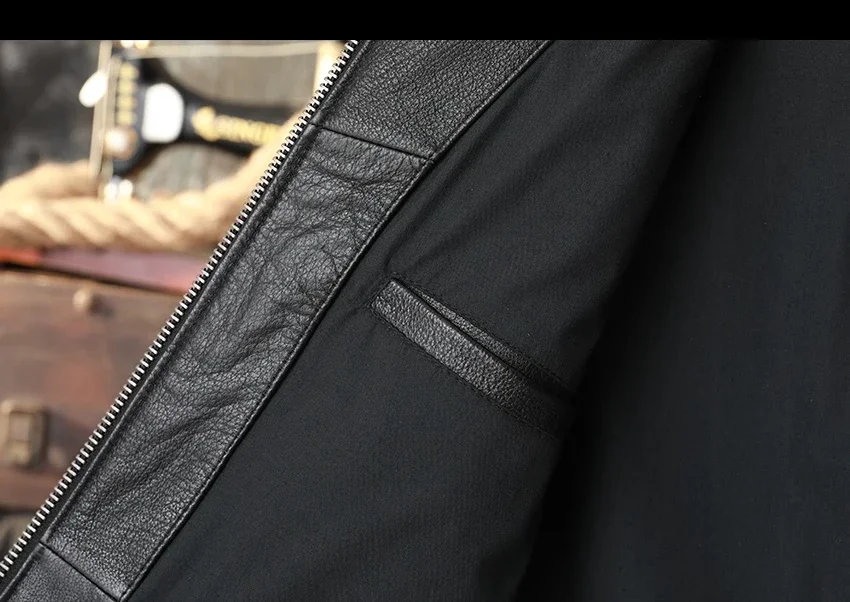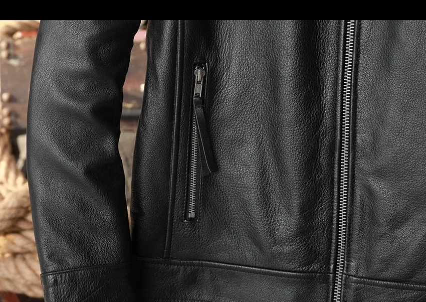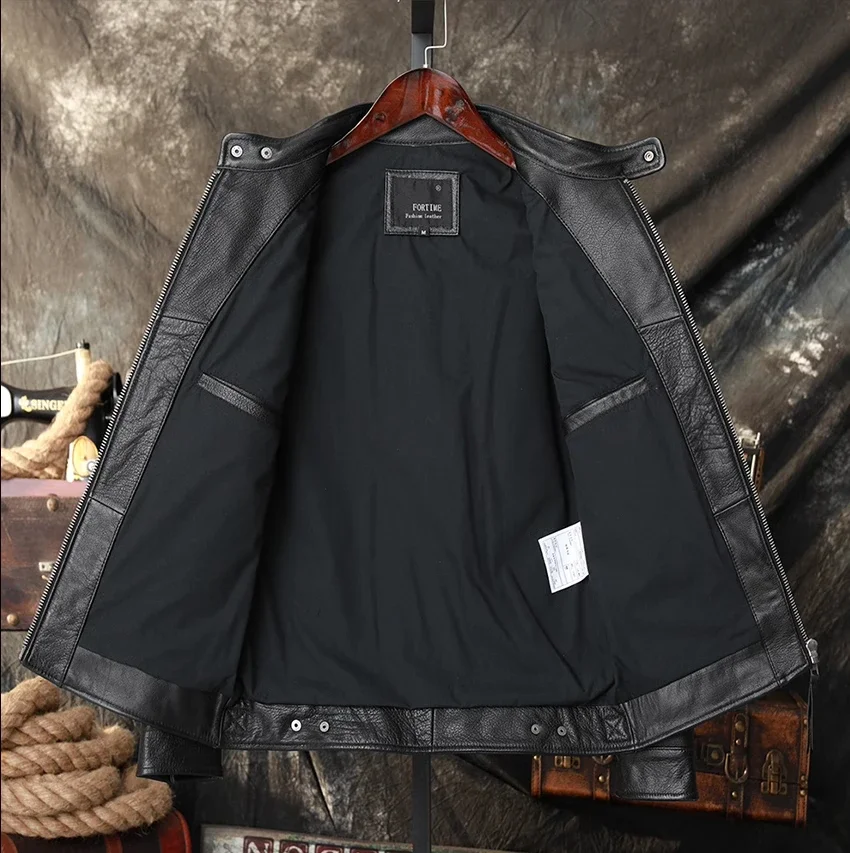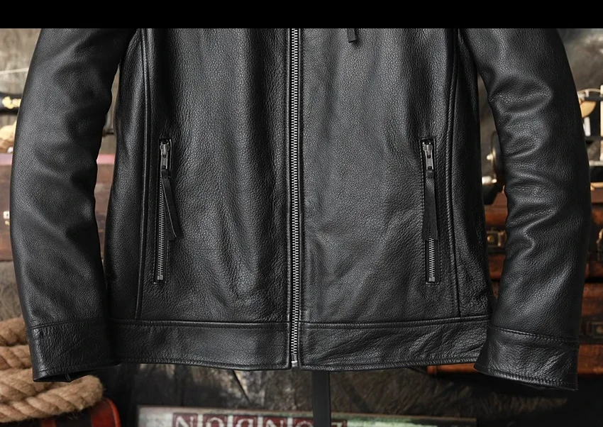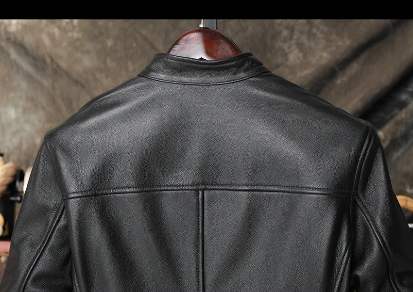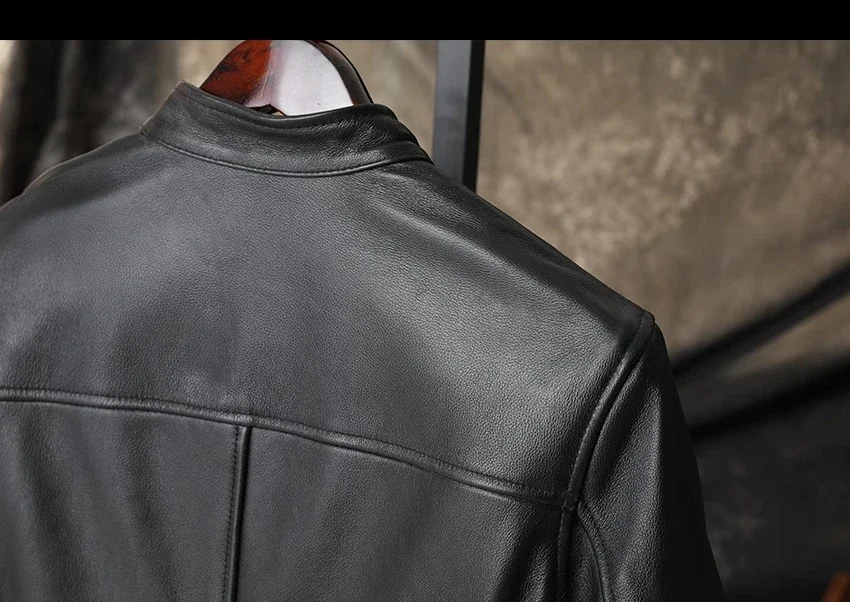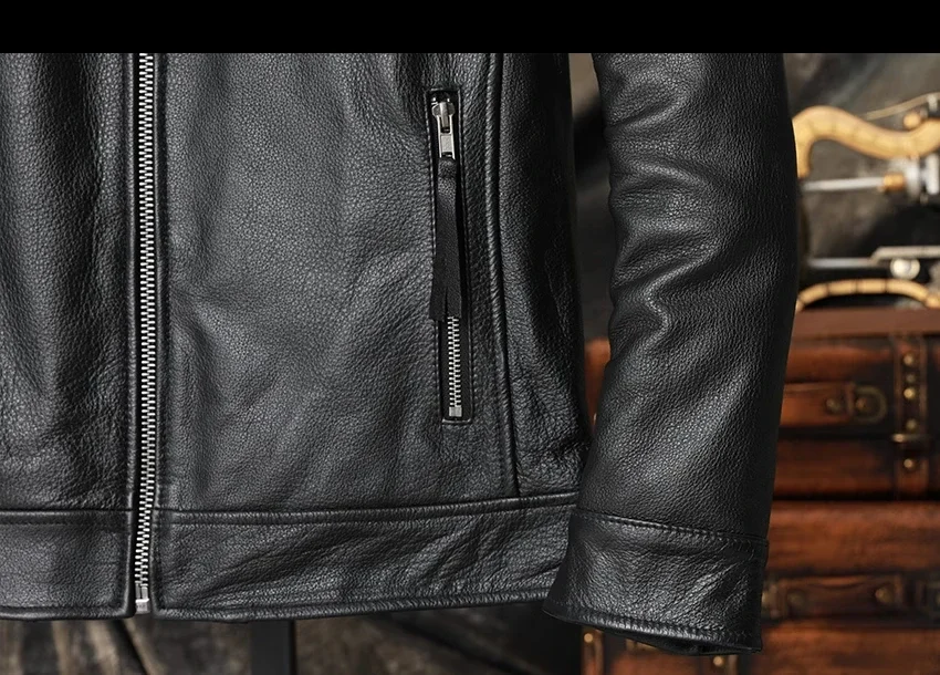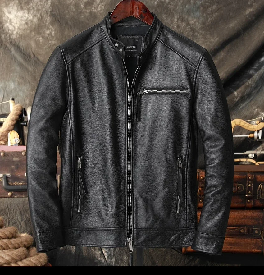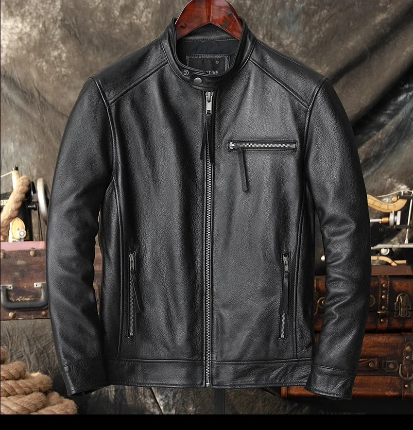 🧥 Men’s Slim Fit Genuine Cowhide Leather Motorcycle Jacket – Natural Real Leather Biker Coat for Spring & Autumn
