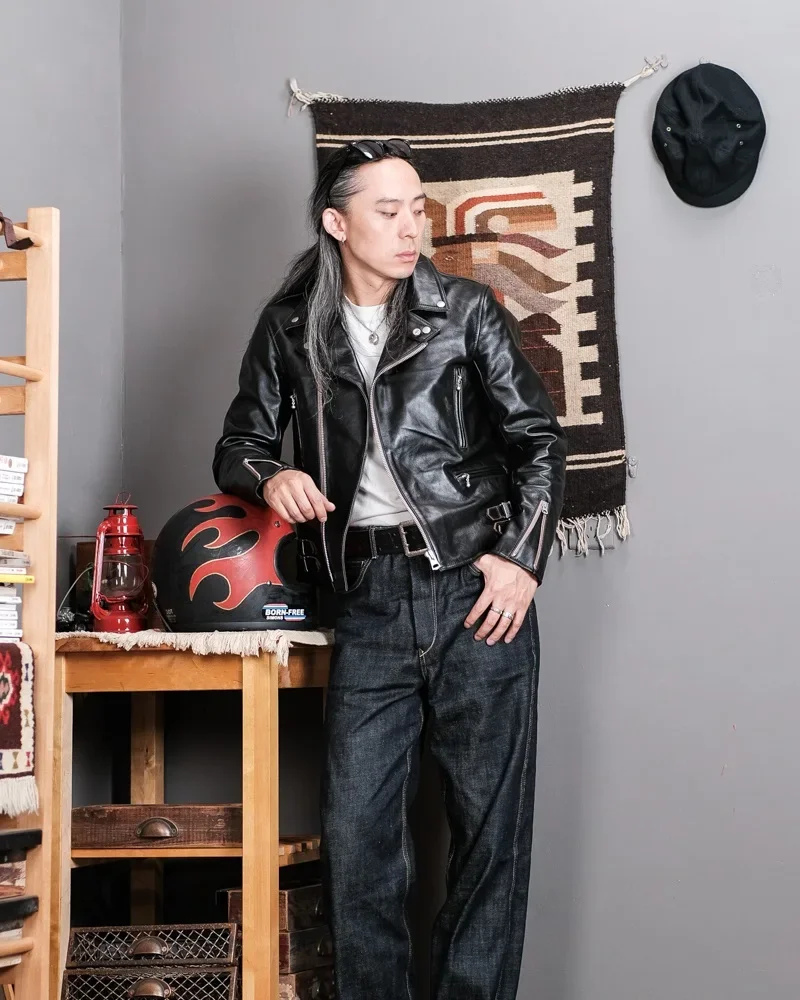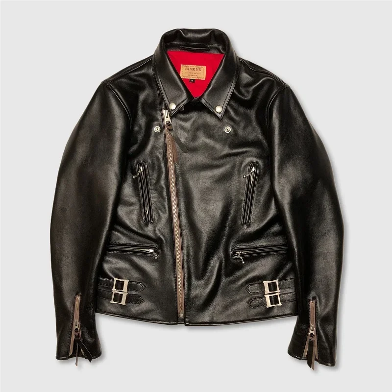 Men’s Tea-Core Calfskin Leather Jacket – Luxury British Vintage Rider 391 Thick Genuine Leather Motorcycle Coat