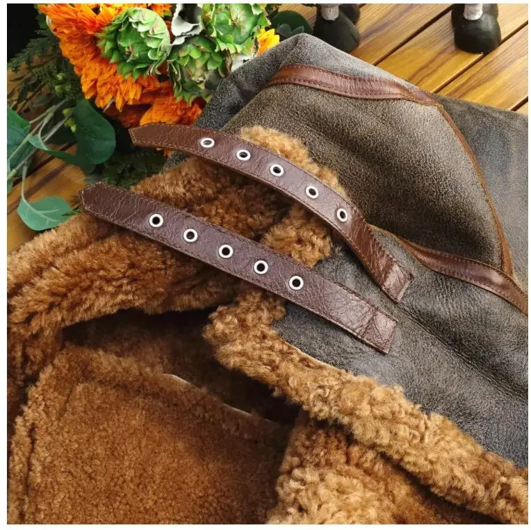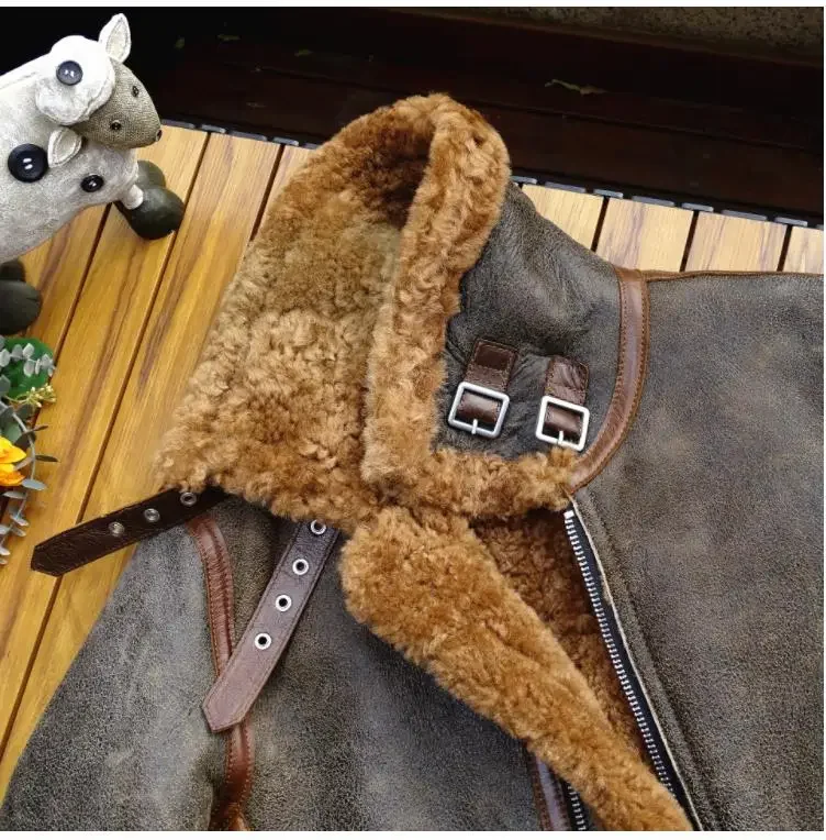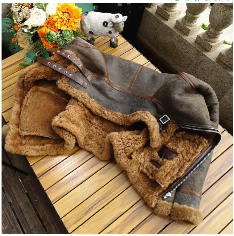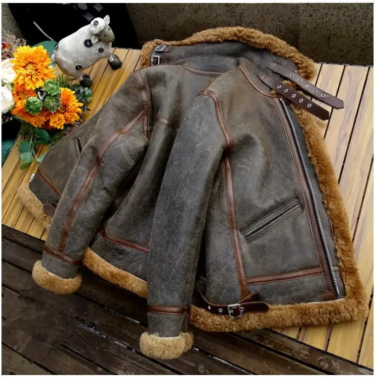 Men’s Thick Winter Warm Shearling Jacket Air Force B3 Style Genuine Leather & 100% Fur Wool Coat