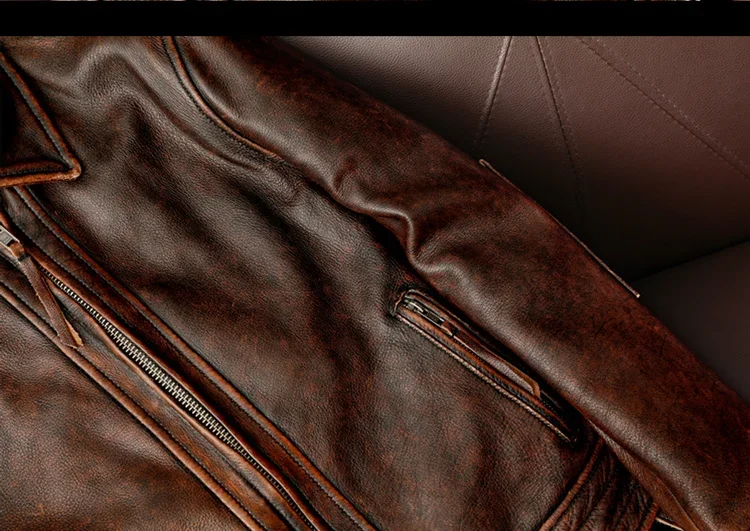 Men’s Vintage Brown Genuine Cowhide Leather Jacket – Slim Fit Fashion Biker Coat, Asian Size S–6XL