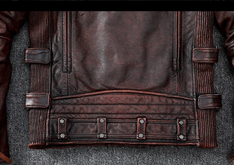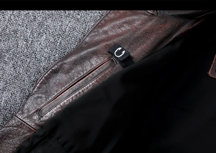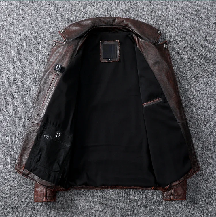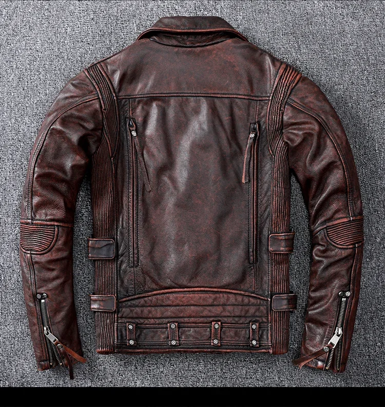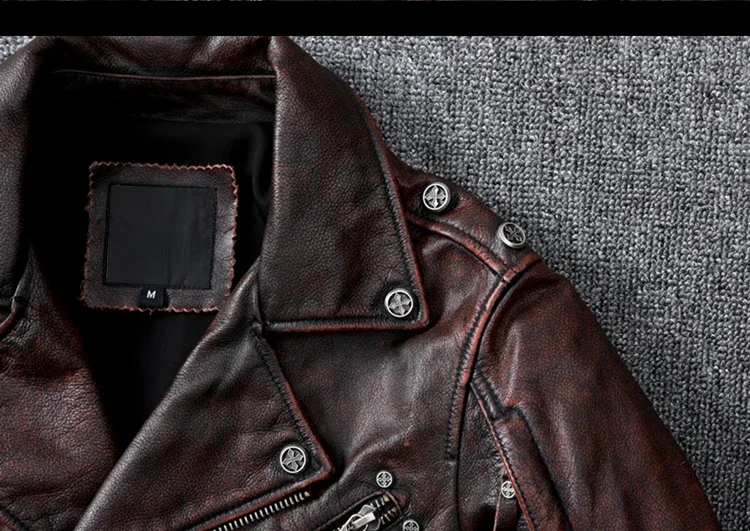 Men’s Vintage Brown Motorcycle Leather Jacket – Genuine Cowhide Slim Fit Biker Coat with Oblique Zipper, Autumn Casual Leather Outerwear