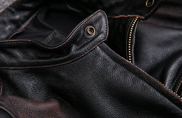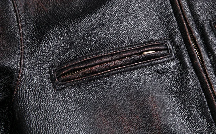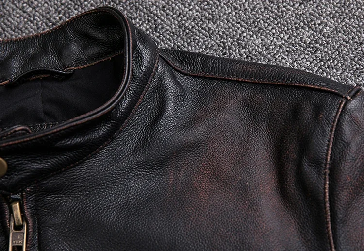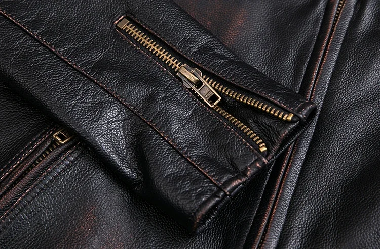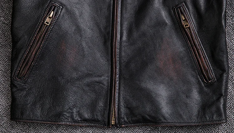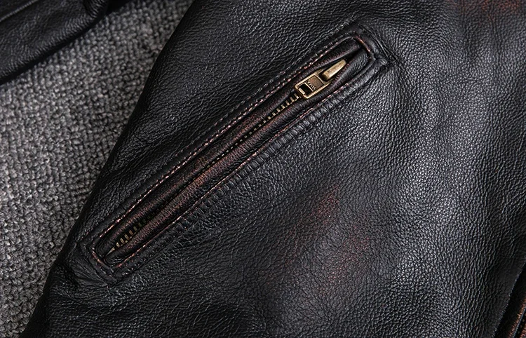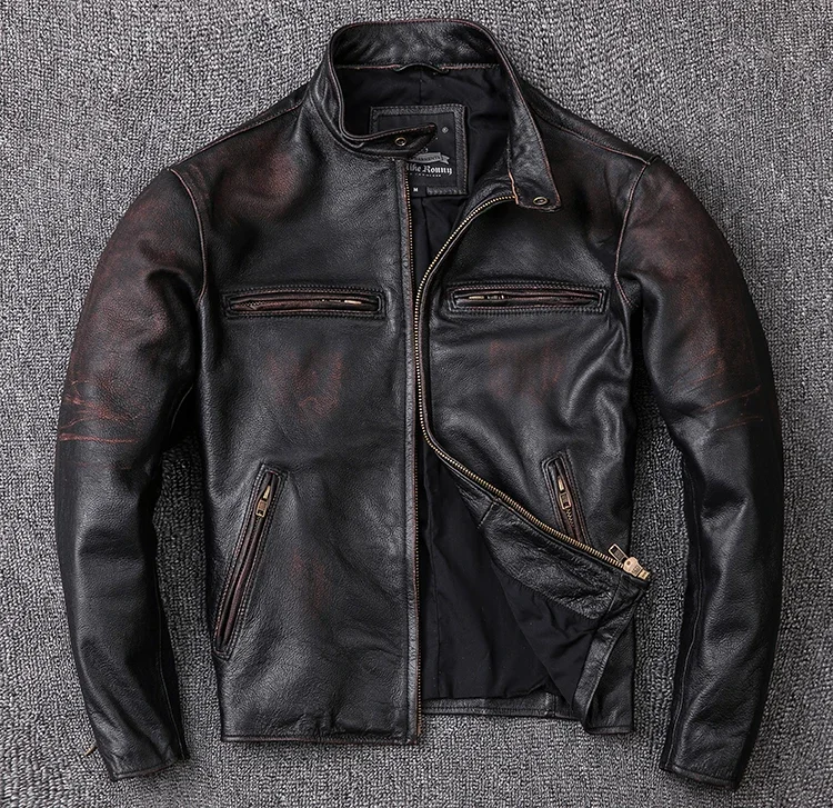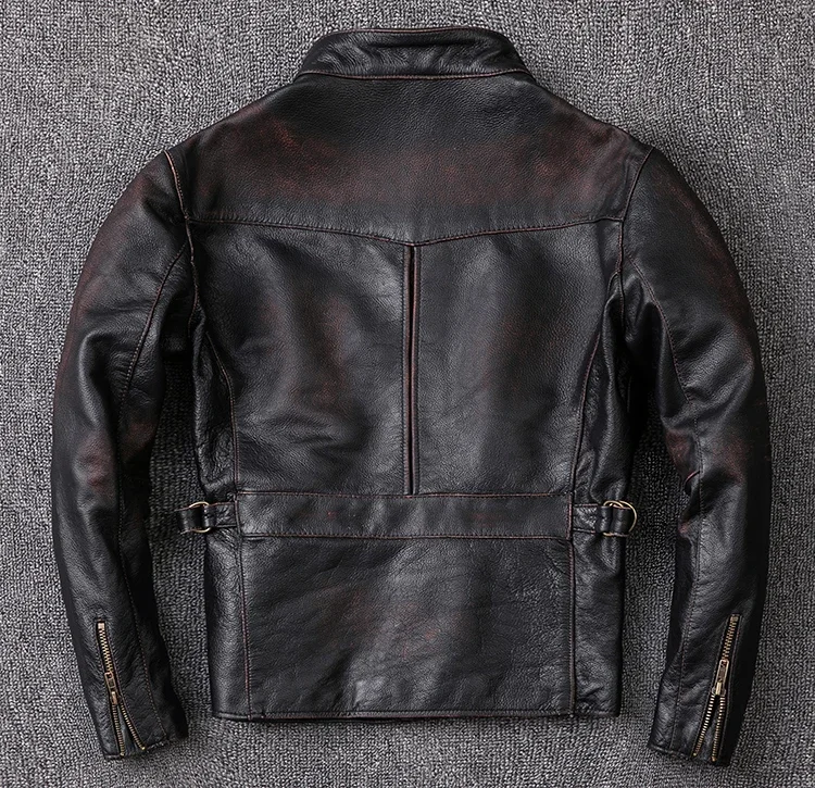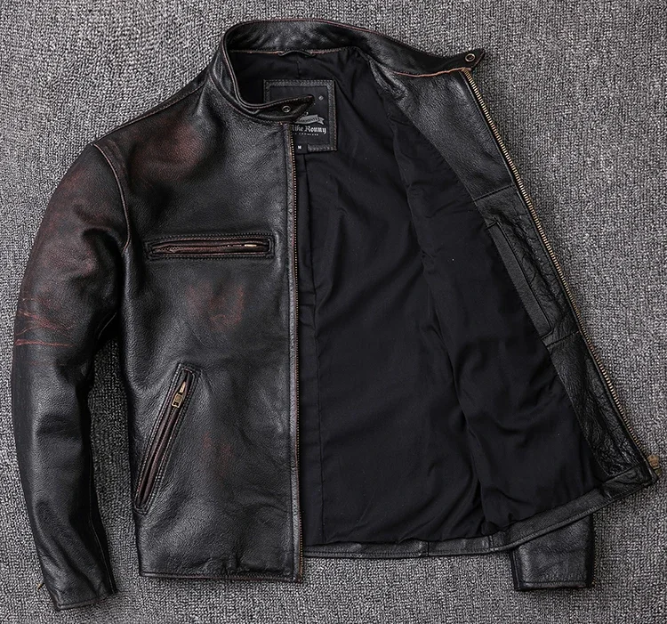 Crafted from 100% natural calfskin leather, this vintage jacket is finished with a stone-milled wash and distressed edges for an authentic, time-worn character. Each piece is carefully handmade to highlight the deep black tones and subtle aging effect, giving it a classic rugged appeal. Perfect for autumn and winter, the jacket offers both comfort and undeniable style.