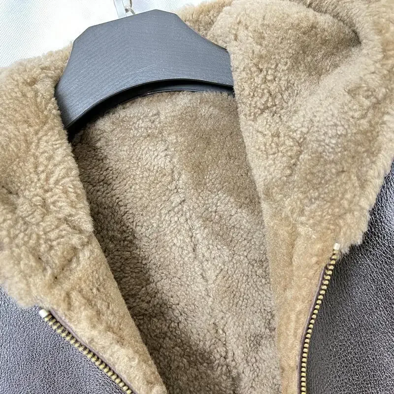 Real Wool Sheepskin Shearing Motor Coat for Man Genuine Leather Lamb Skin Jacket for Male Hood Brown Plus Size XXXXXXXL 6XL 7XL